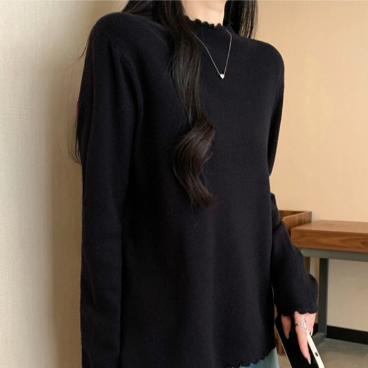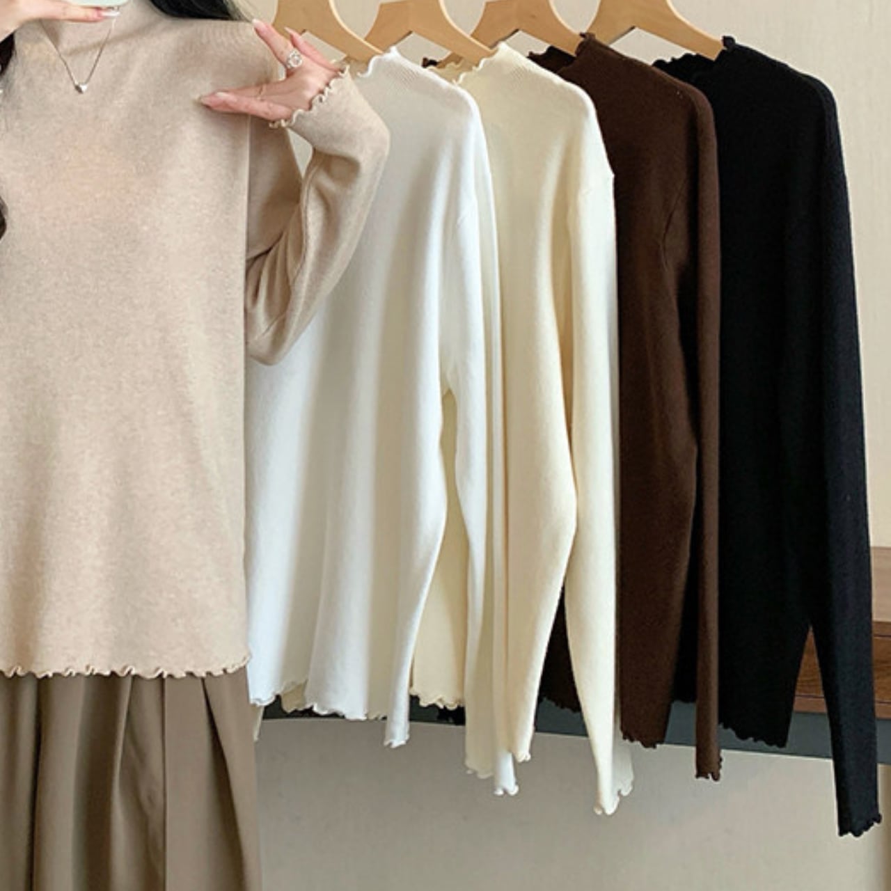 フリルネック 長袖 プルオーバー カットソー f-0018