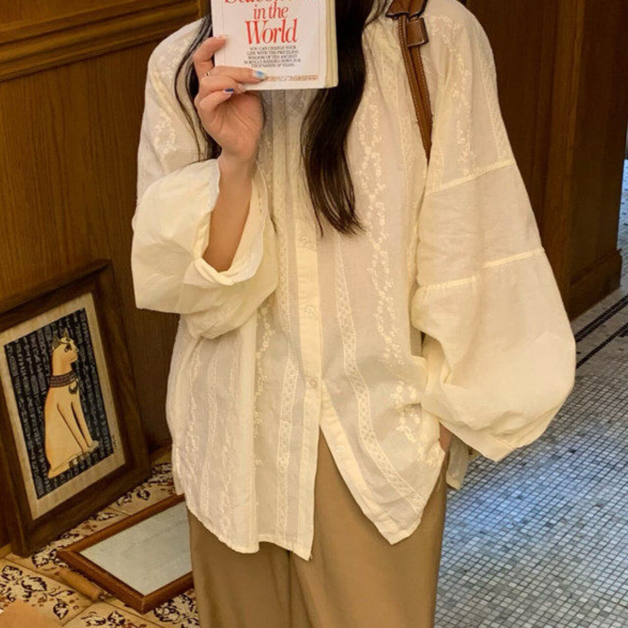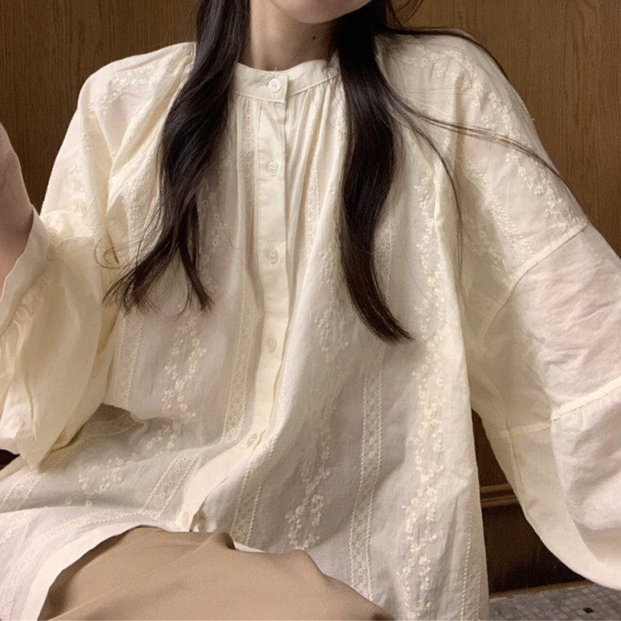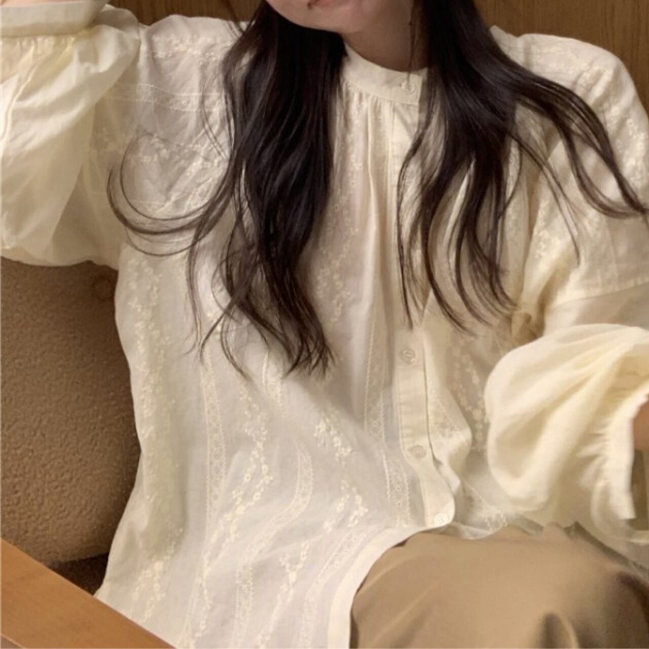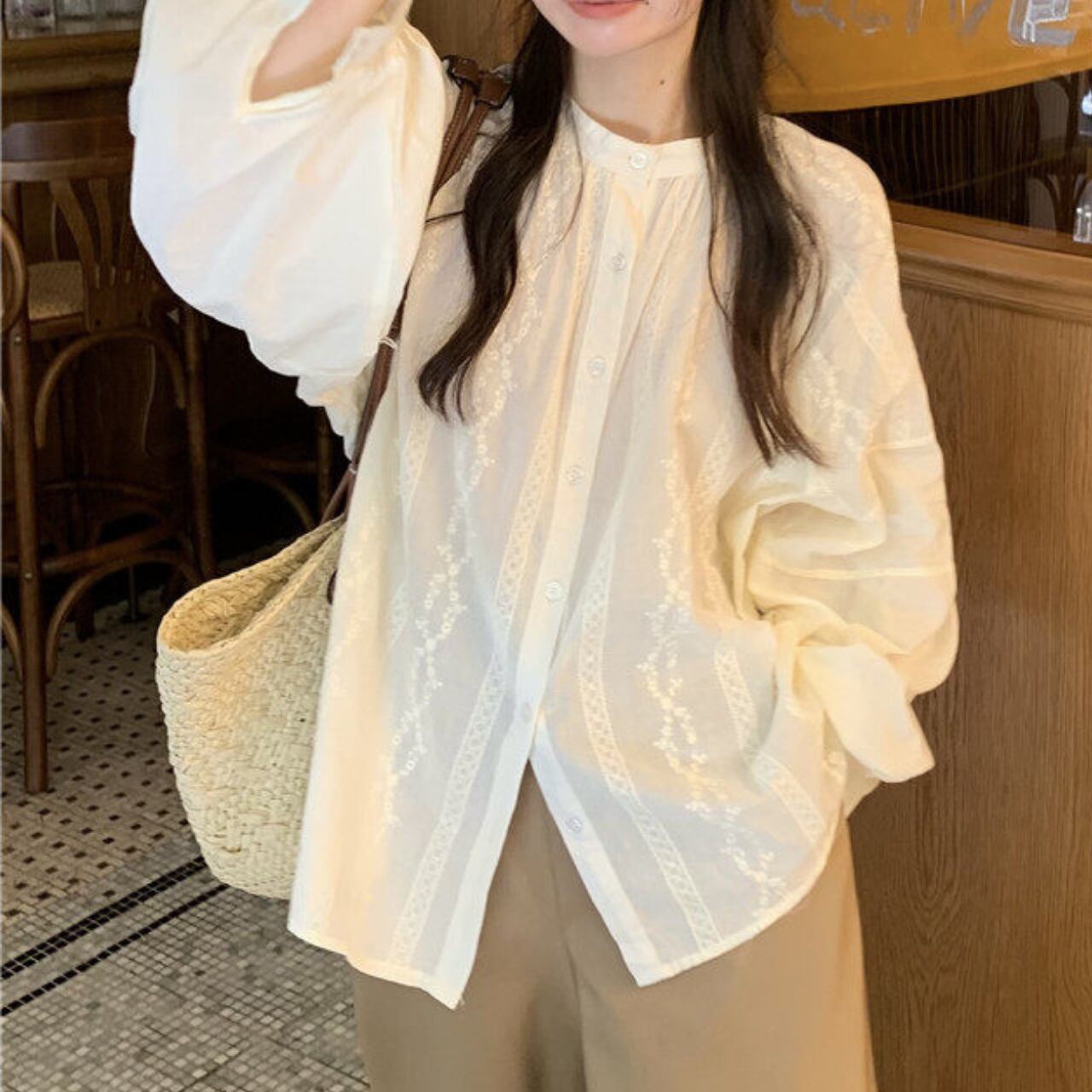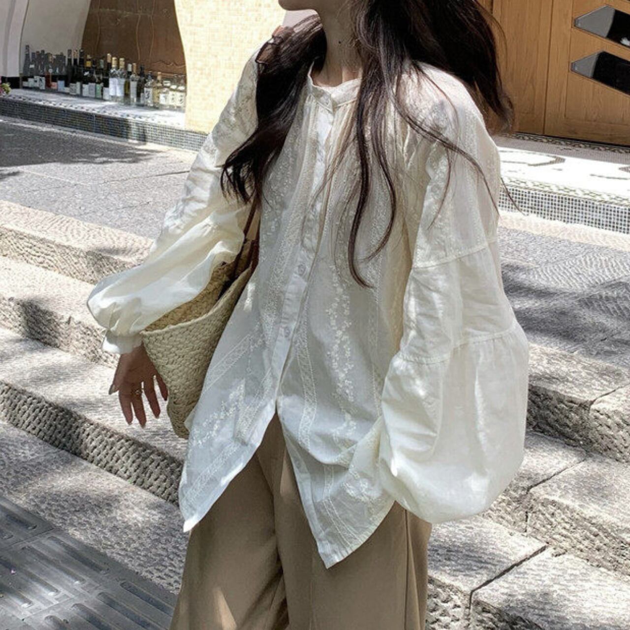 長袖 バルーンスリーブ シャツ f-0021