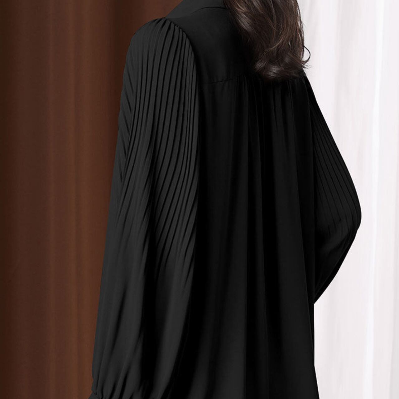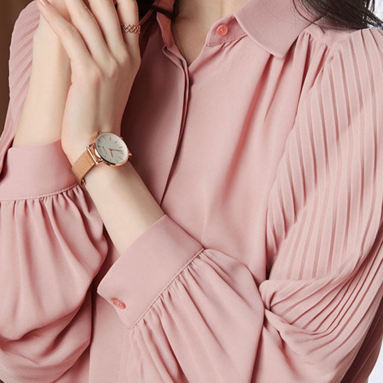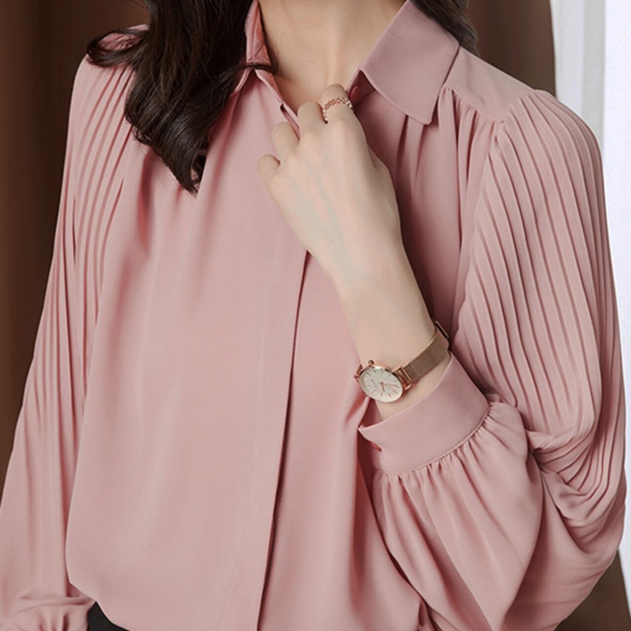 袖のプリーツが、女性らしいさりげない華やかさをプラスします。