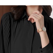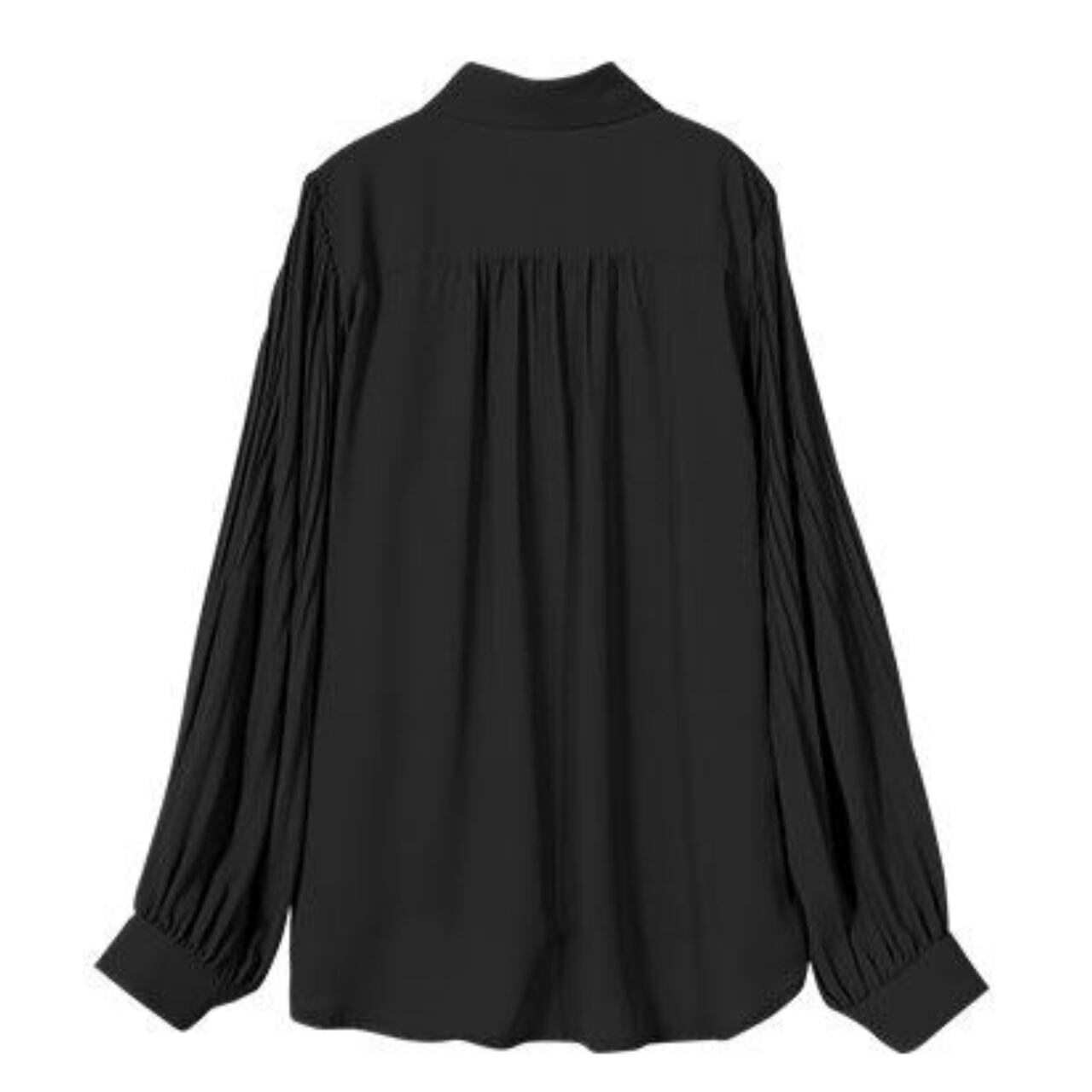 プリーツ 長袖 シャツカラー ブラウス f-0022