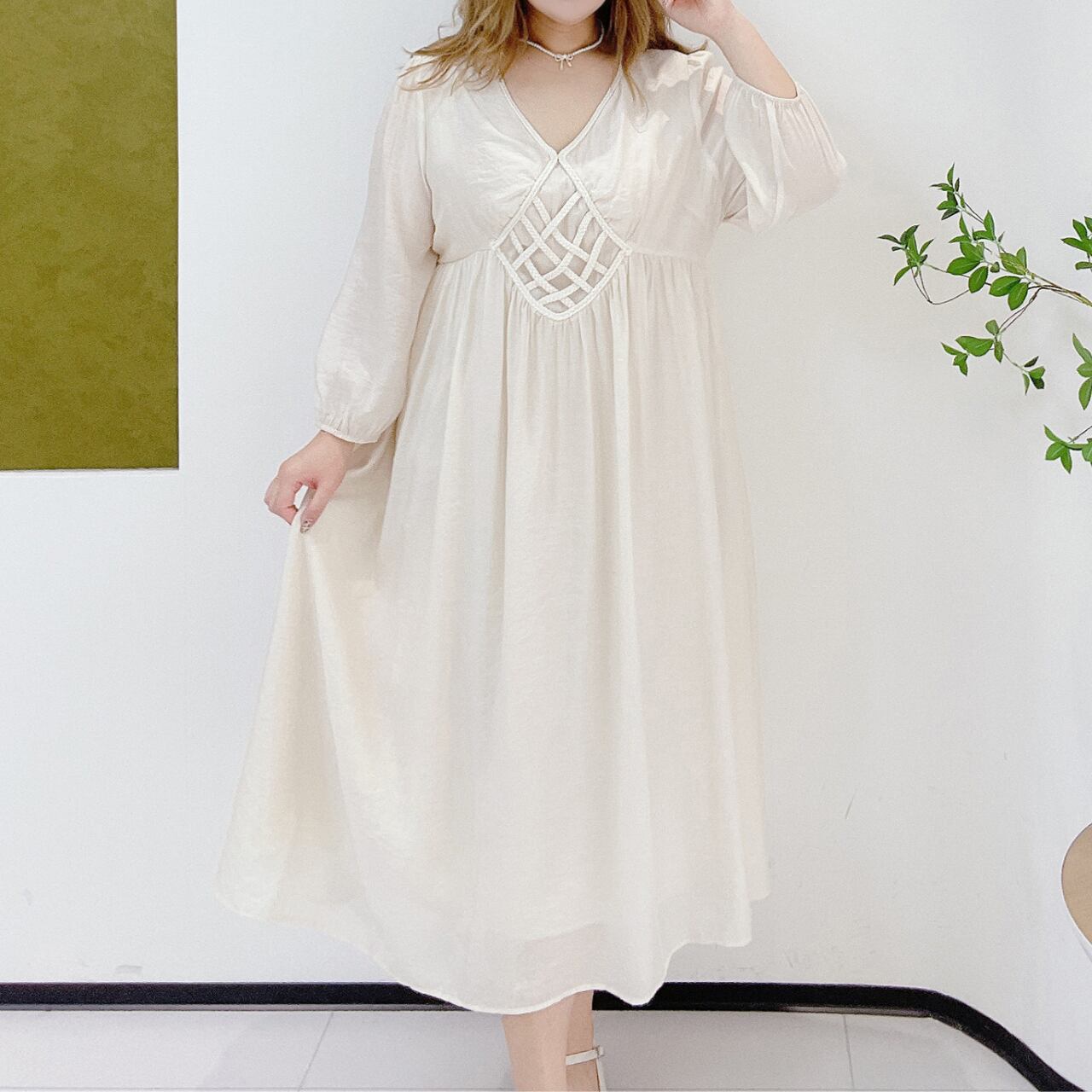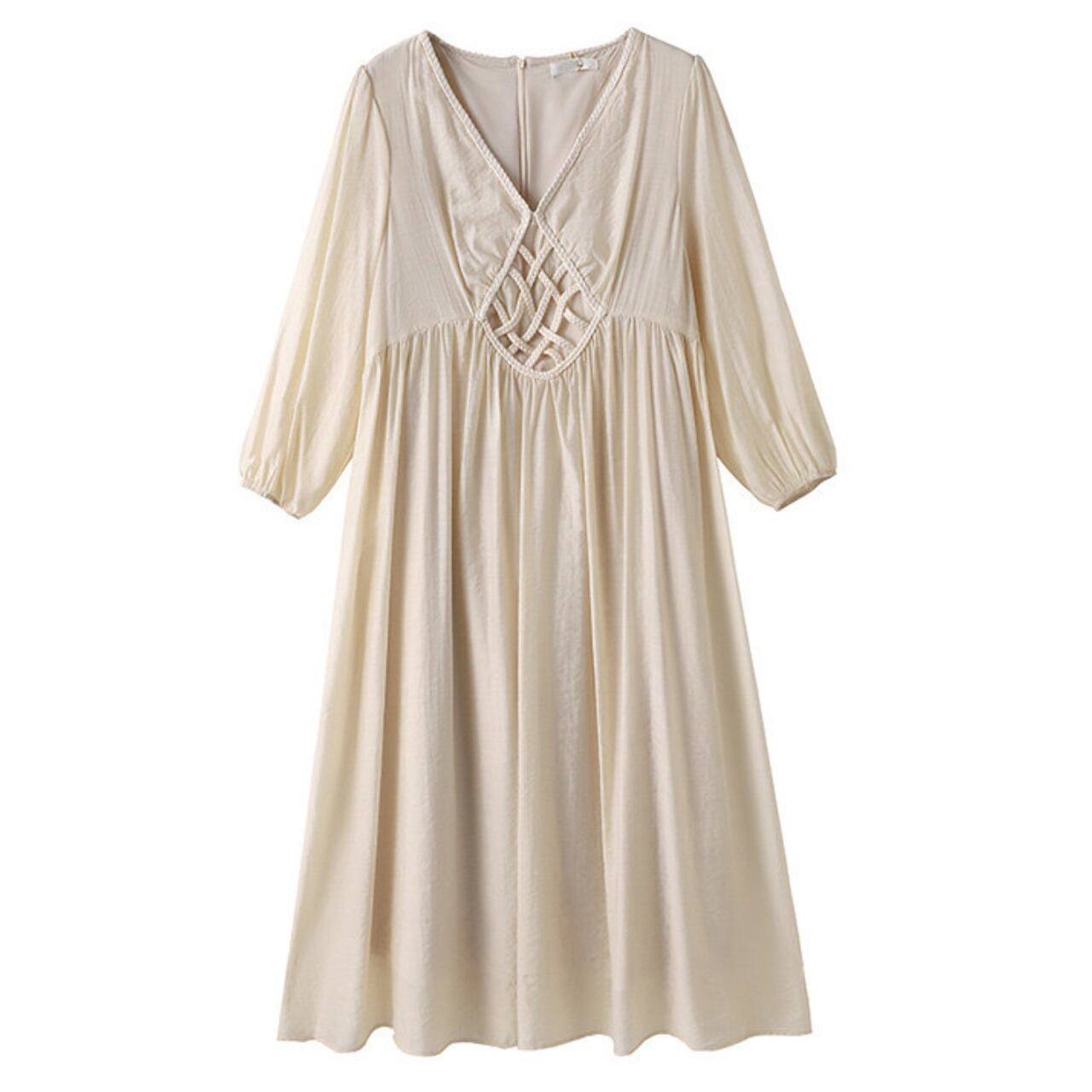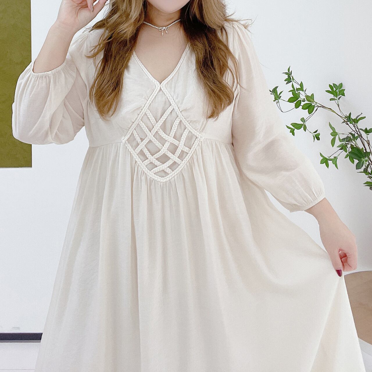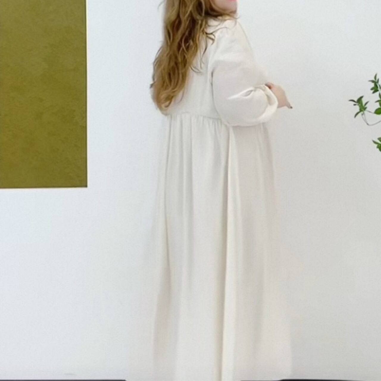 Vネックが顔周りをすっきりと見せてくれるワンピース。