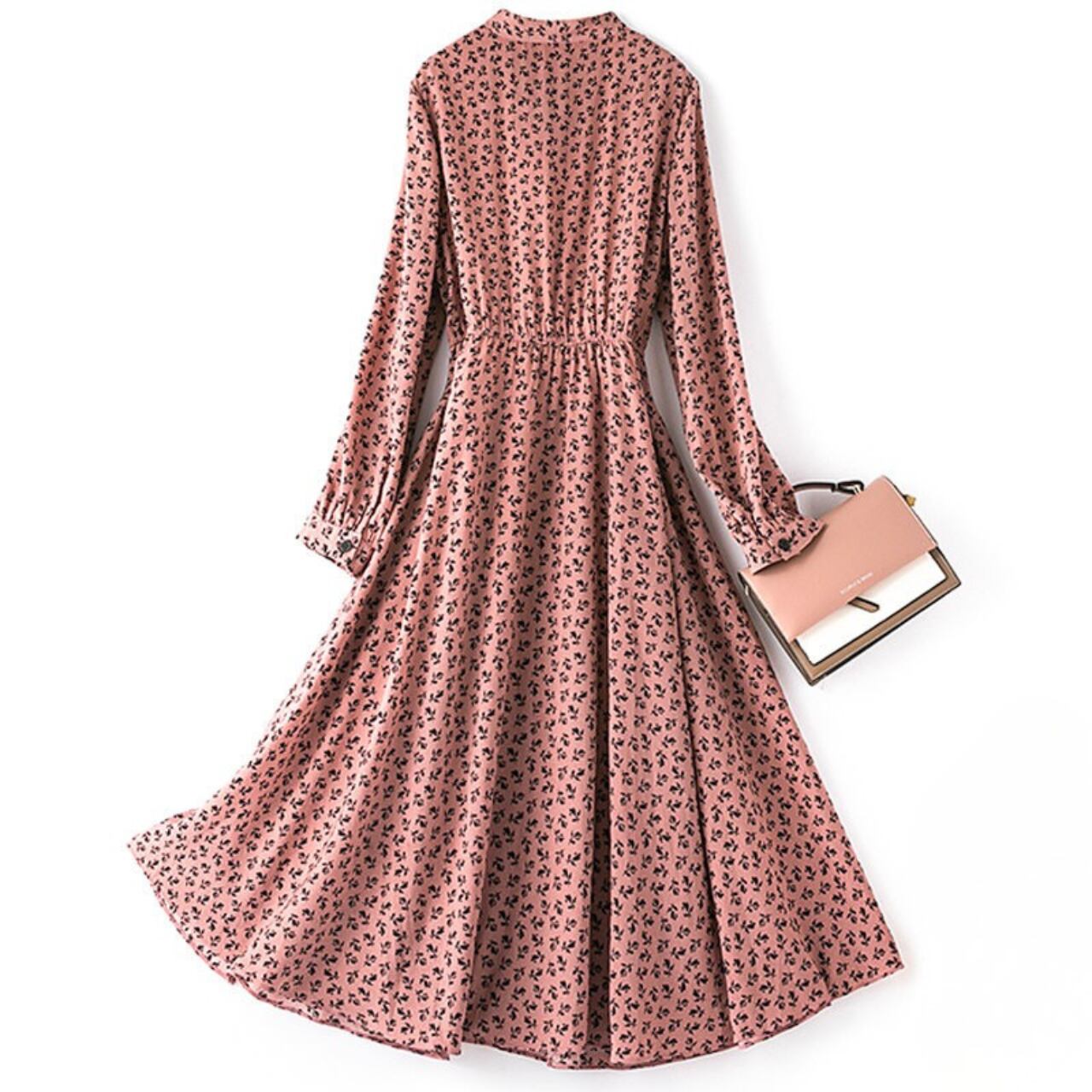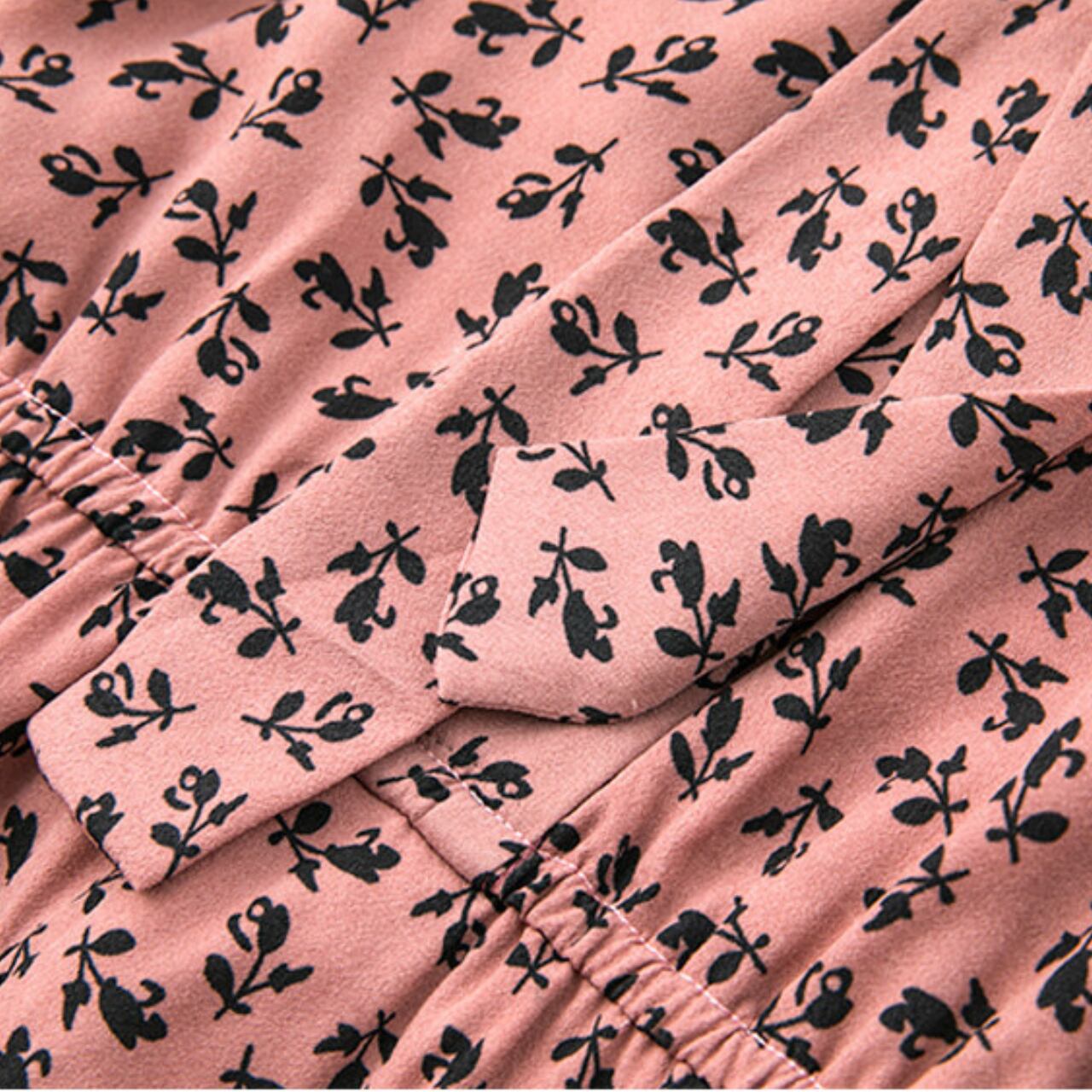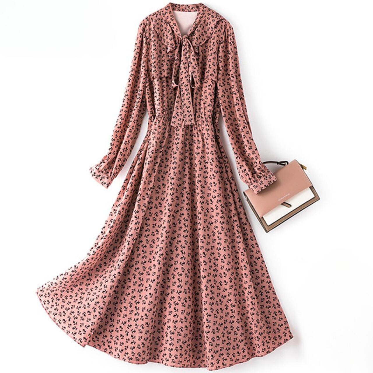 リボンタイがフェミニンな雰囲気を演出する長袖ワンピースです。ミモレ丈のAラインシルエットが、上品で落ち着いた印象を与えます。デイリー使いはもちろん、ちょっとしたお出かけやオケージョンシーンにも活躍する一枚です。