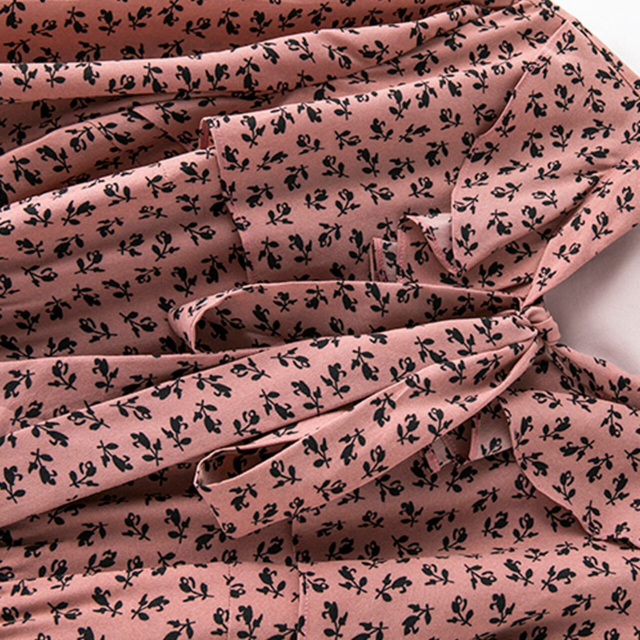 リボンタイ 長袖 ミモレ丈 Aライン ワンピース f0036