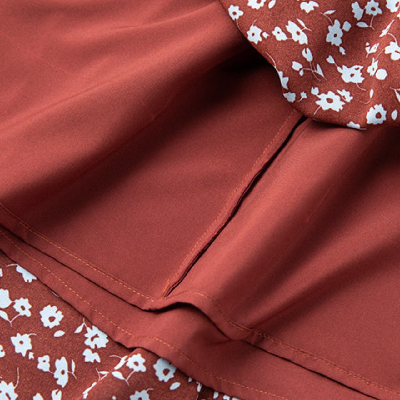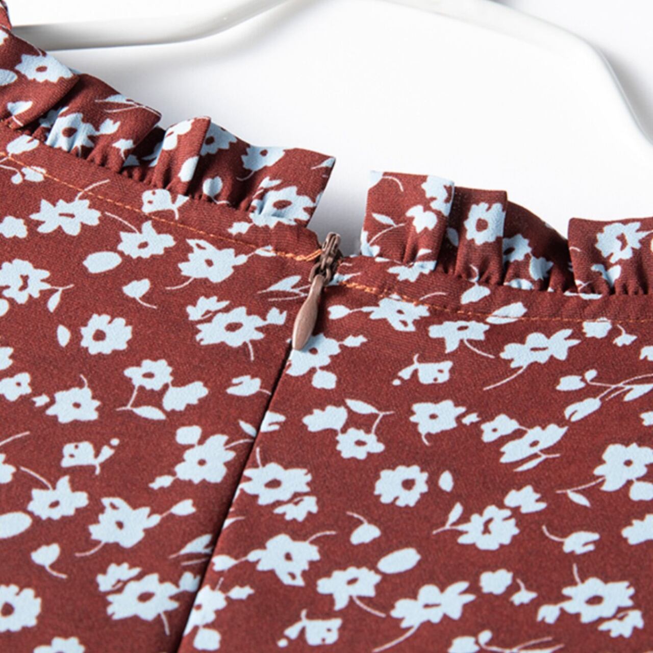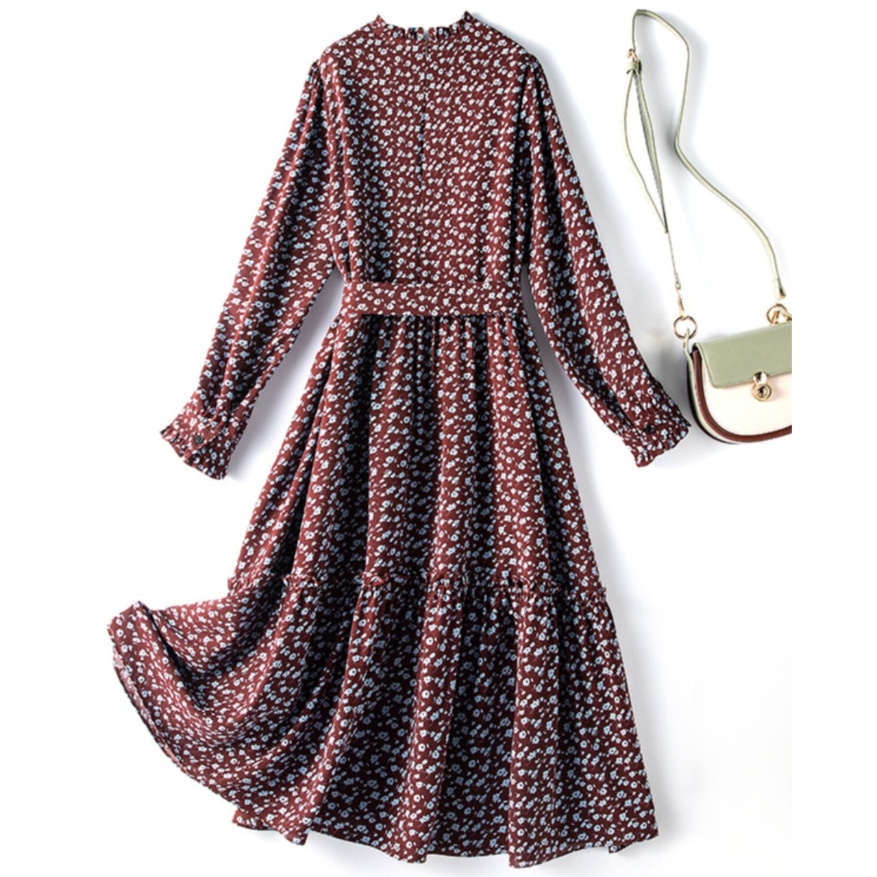 小花柄がフェミニンな印象を添えるミモレ丈ワンピースです。