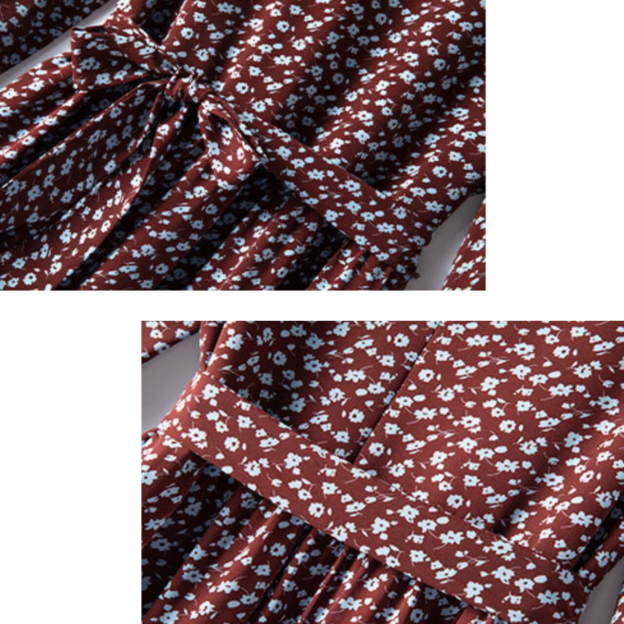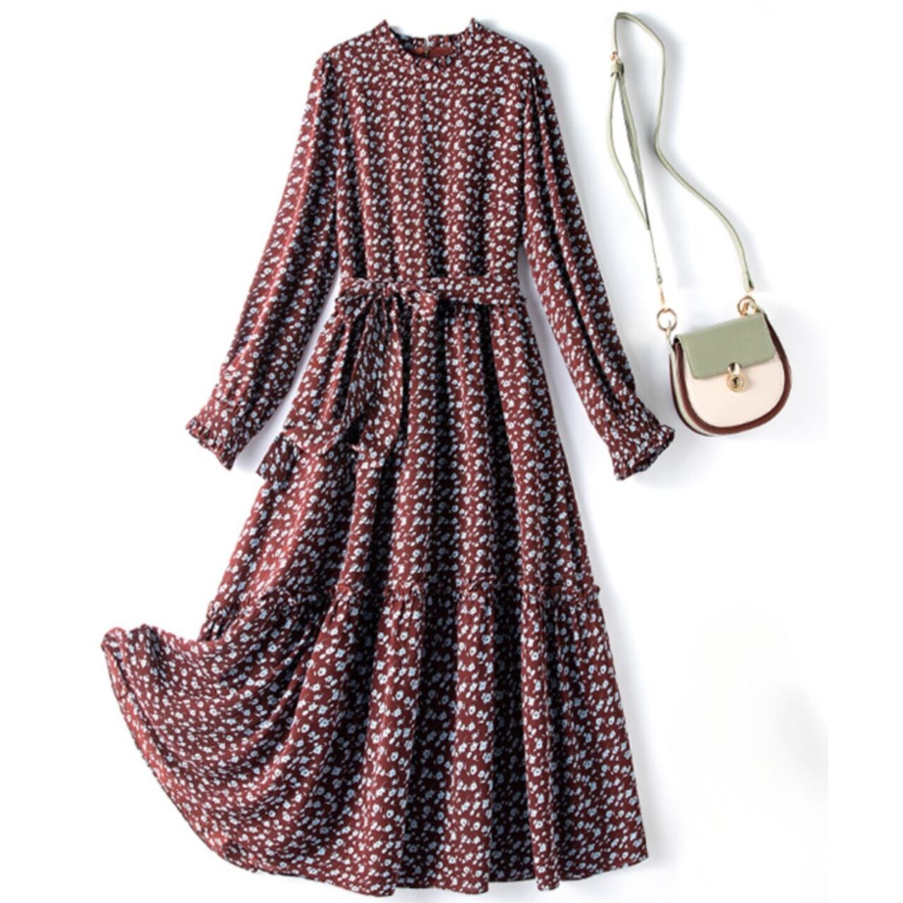 ベルト付き ミモレ丈 長袖 ワンピース f0038