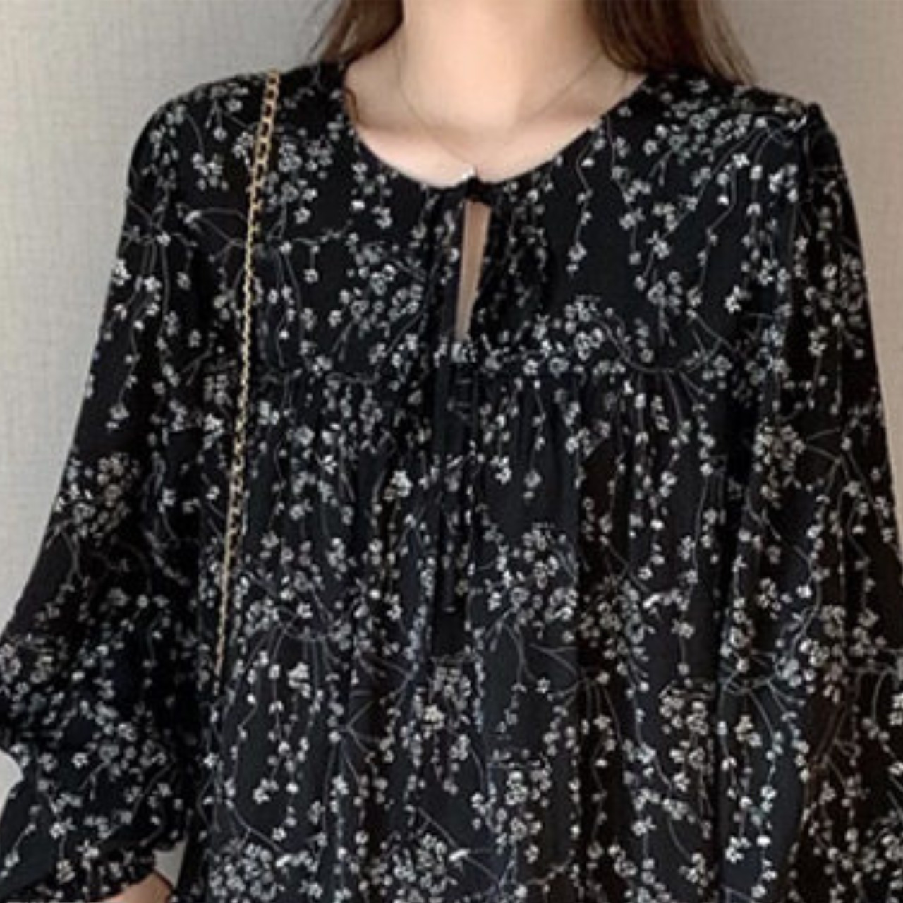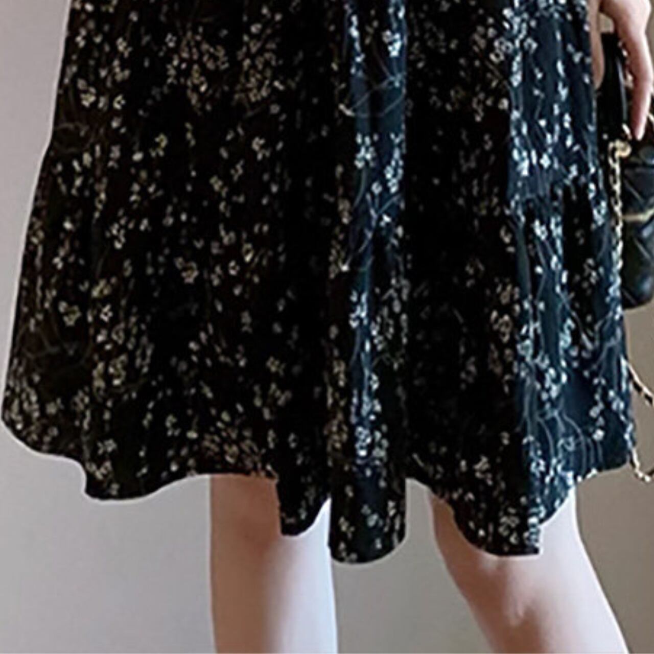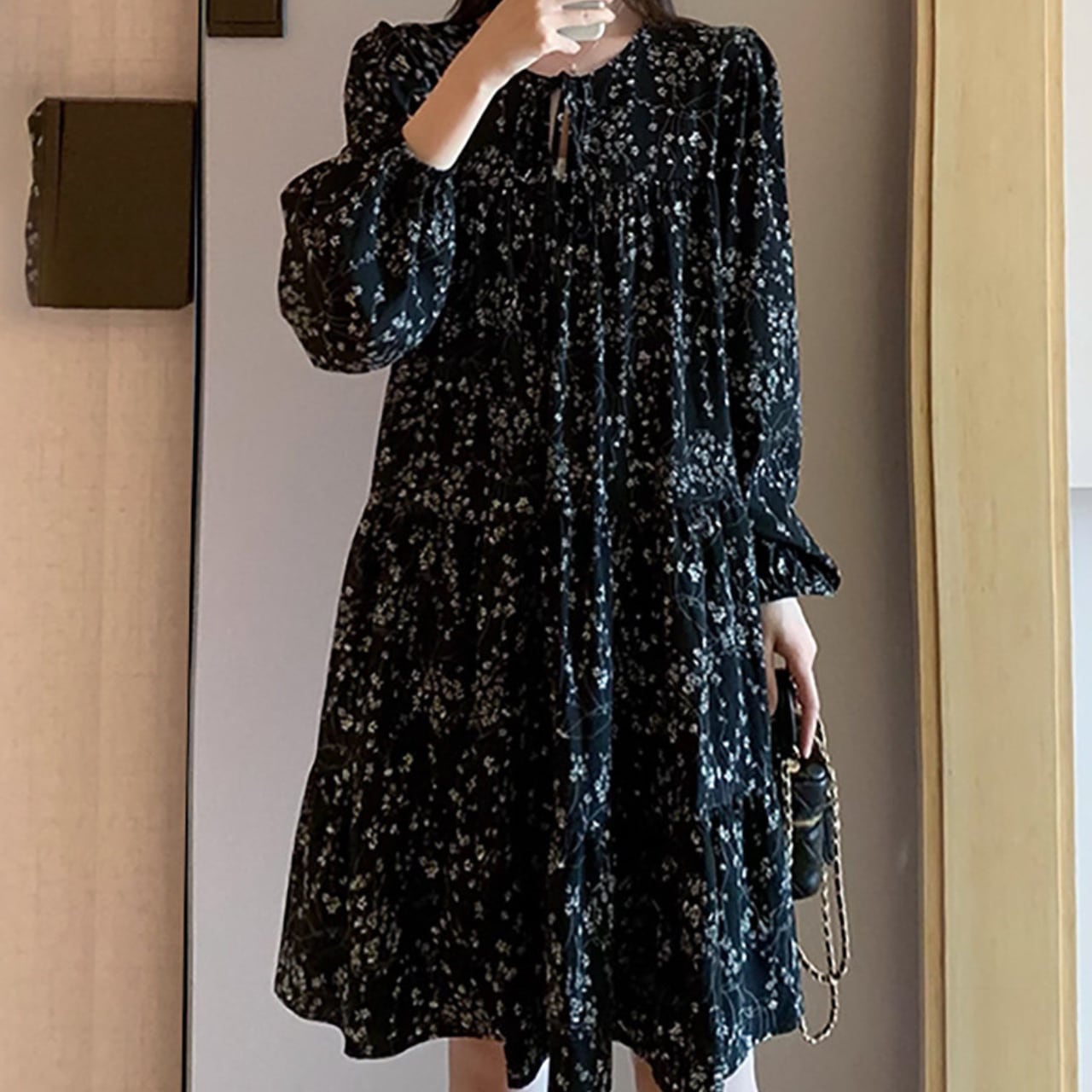 可憐な花柄が目を引くワンピース。