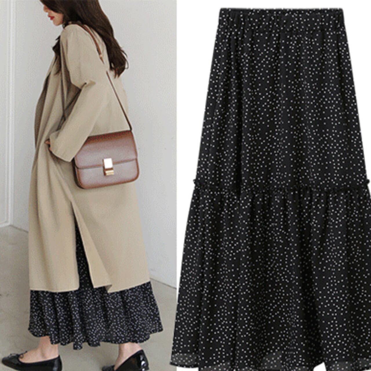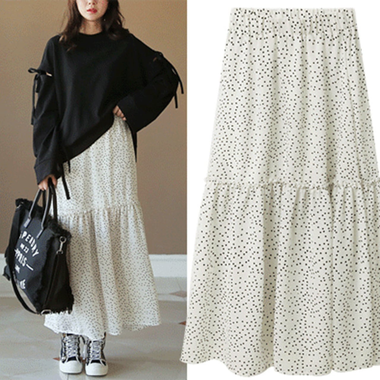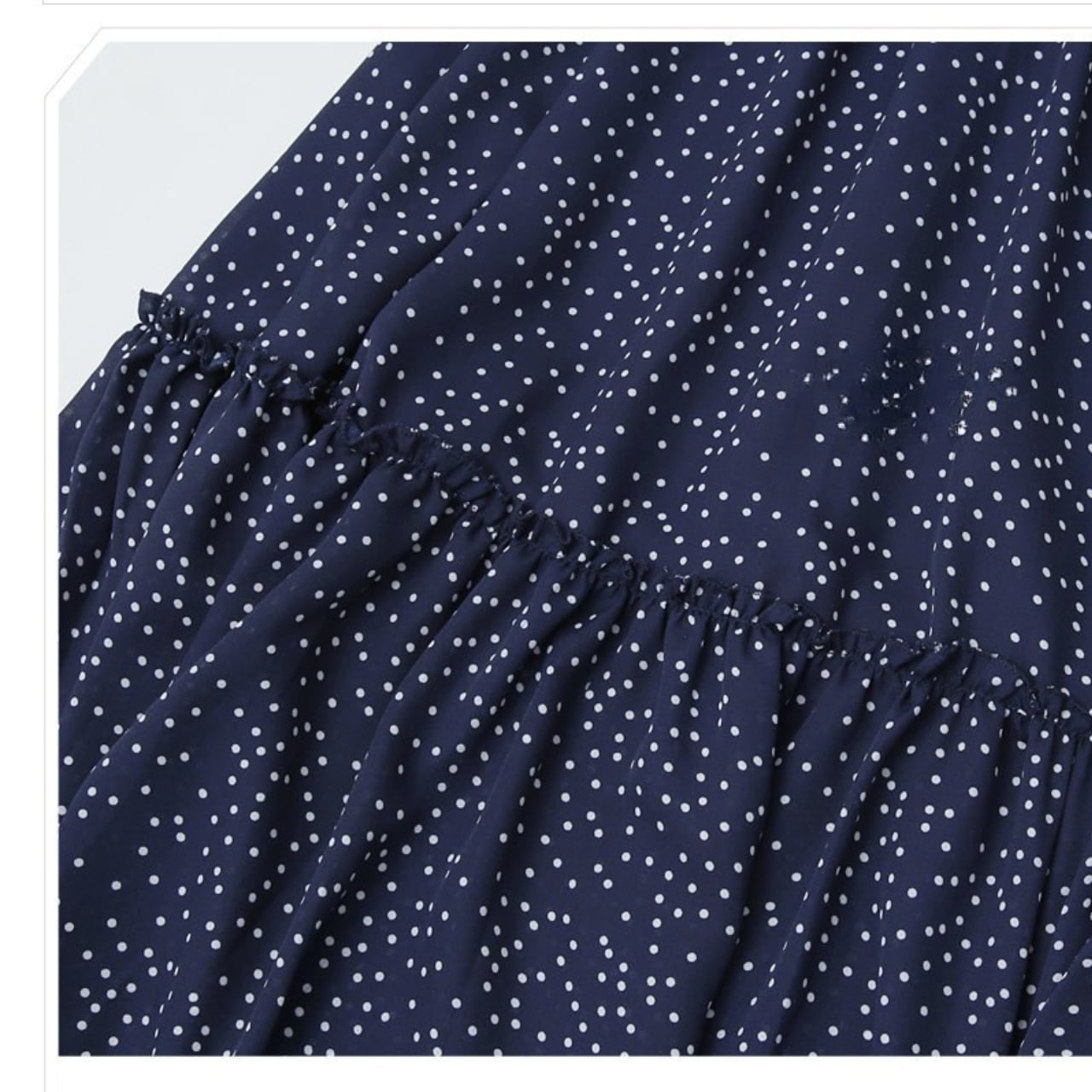 ドット柄 ティアード ミモレ丈 スカート f0030