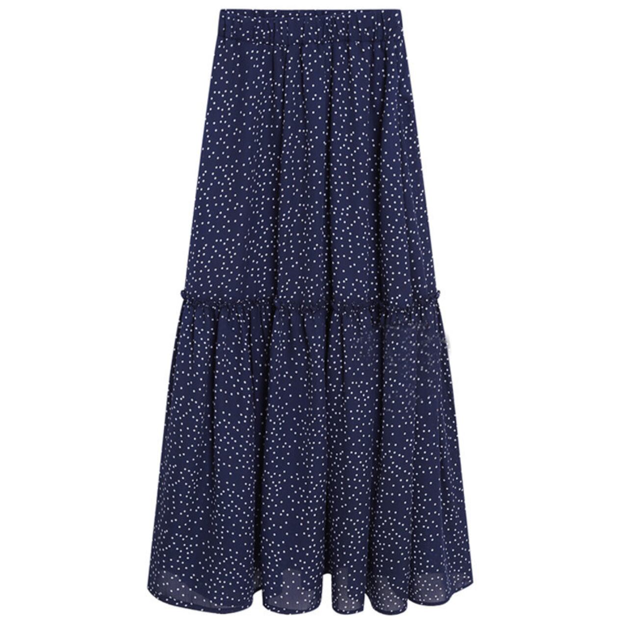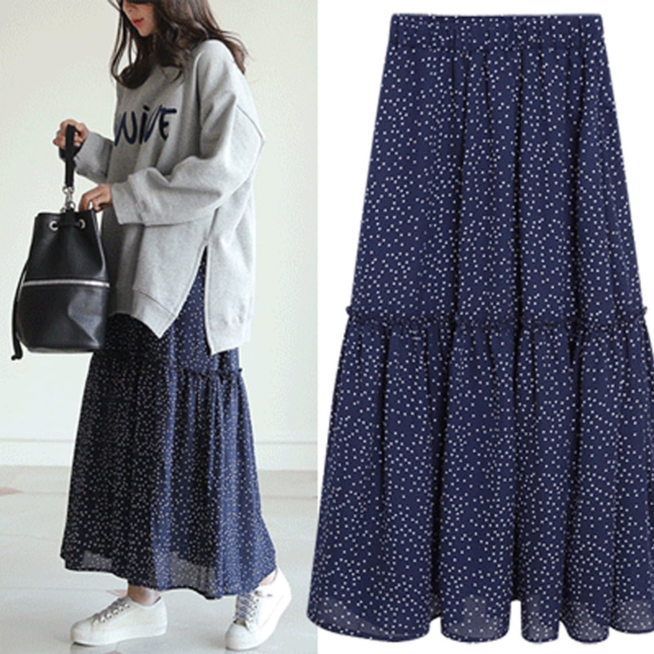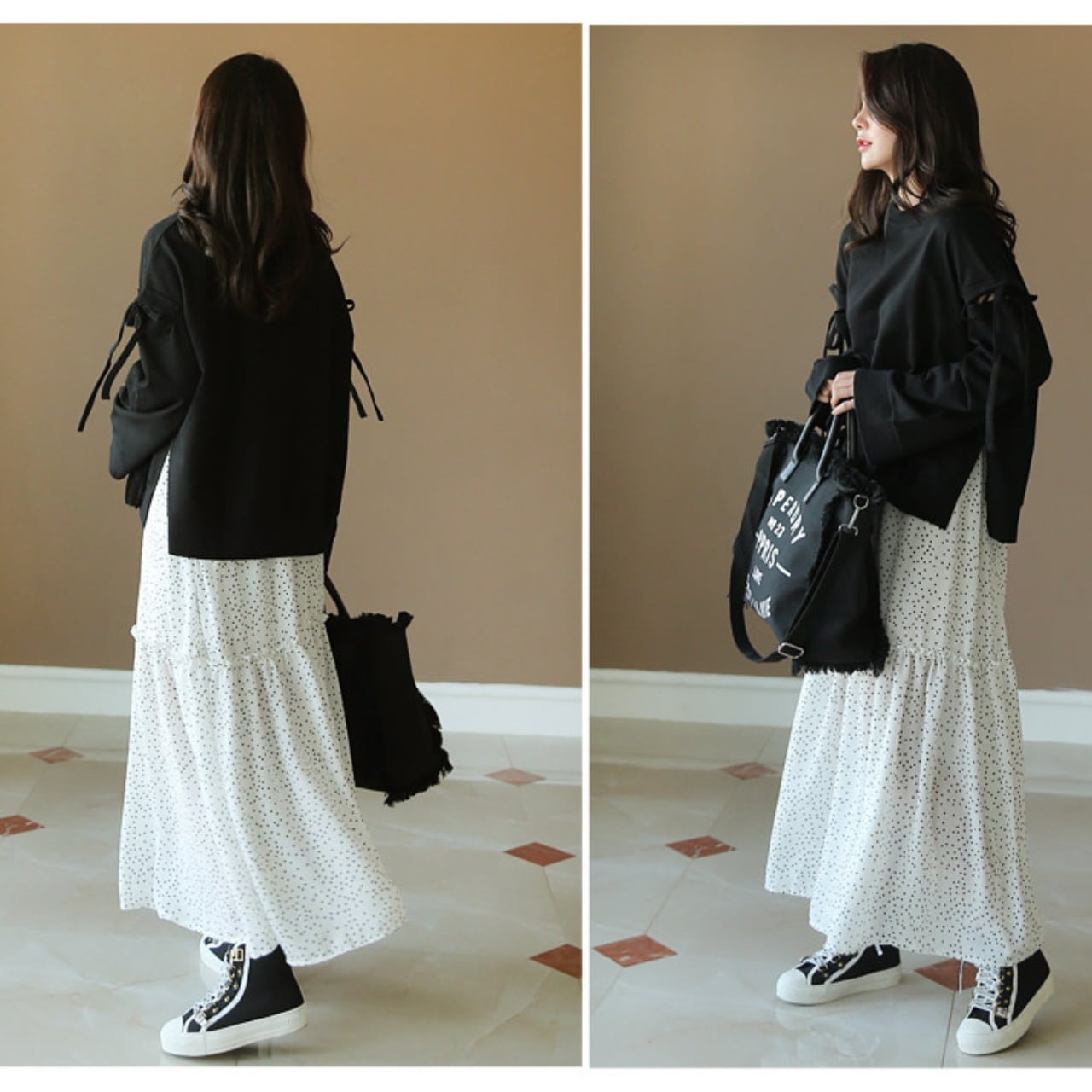 ドット柄 ティアード ミモレ丈 スカート f0030