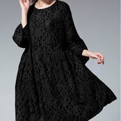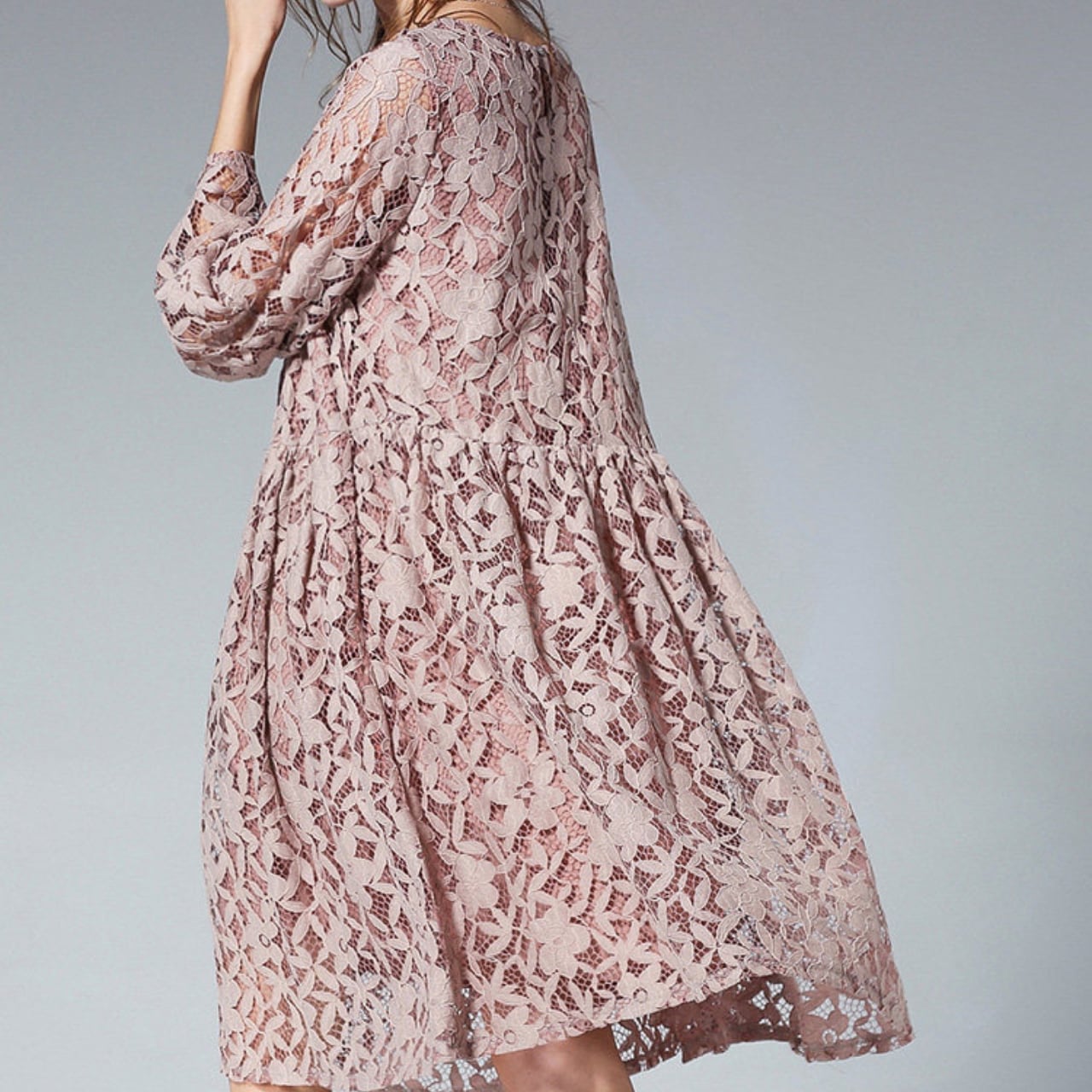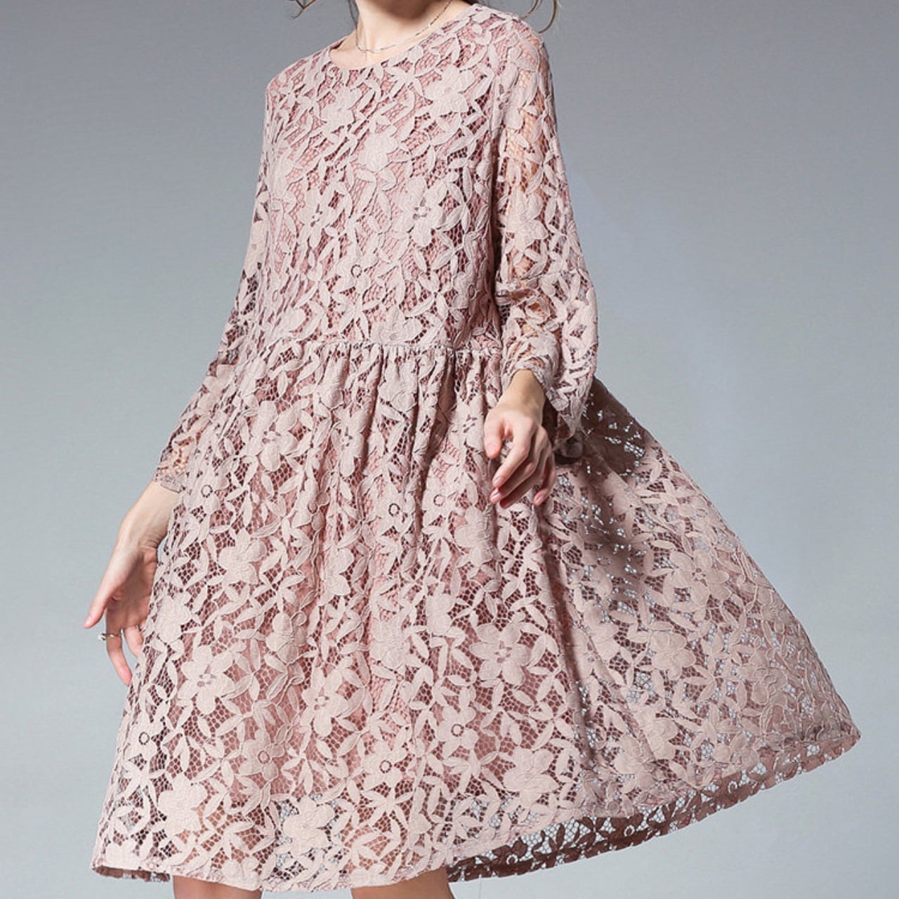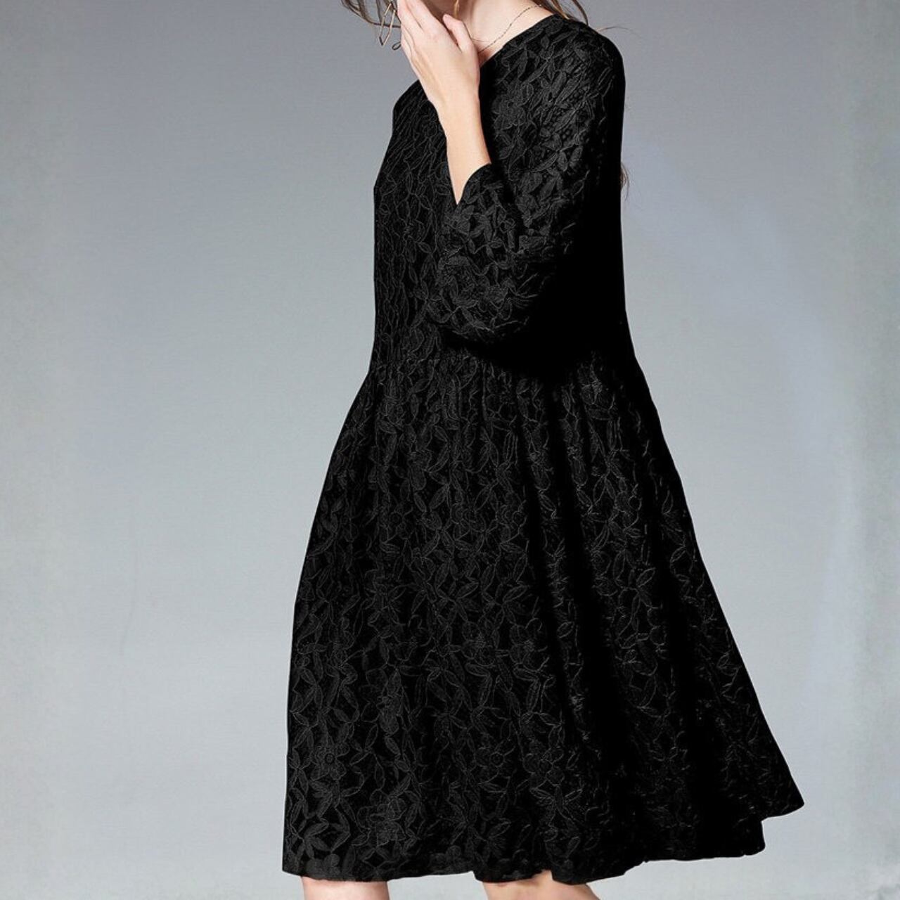 長袖 膝下丈 レース ワンピース f0044
