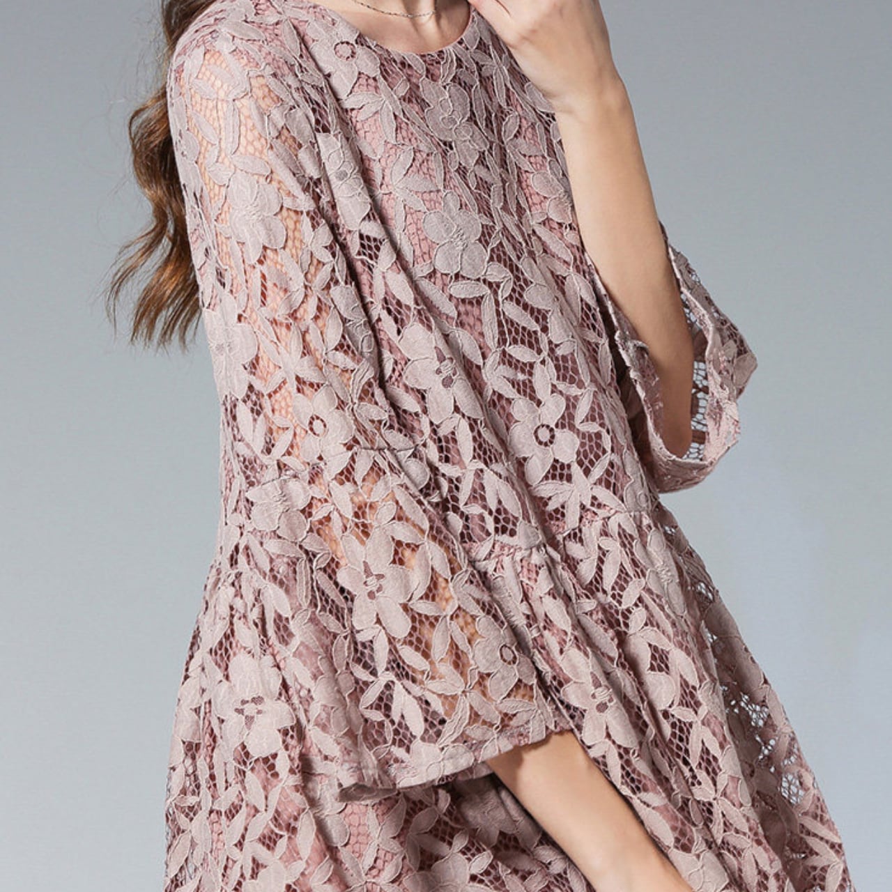 繊細なレースが、上品な印象を演出するワンピース。