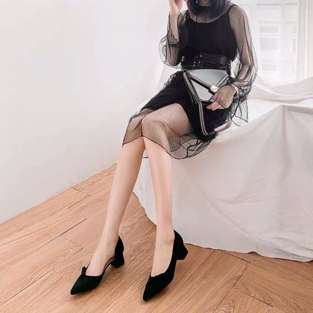 ・ワンピースやスカートと合わせれば、フェミニンで上品な印象に。