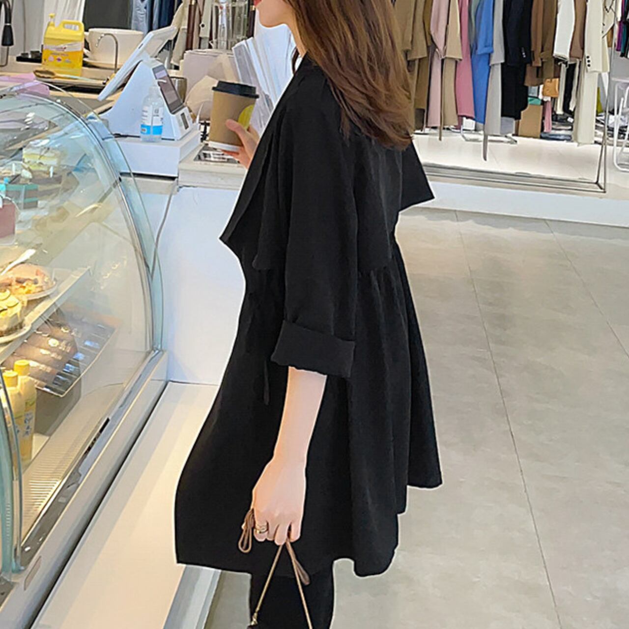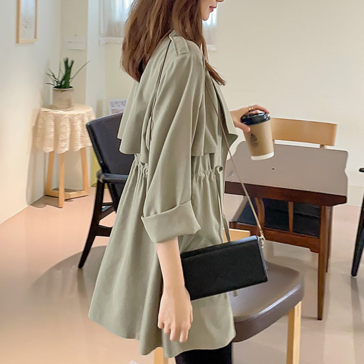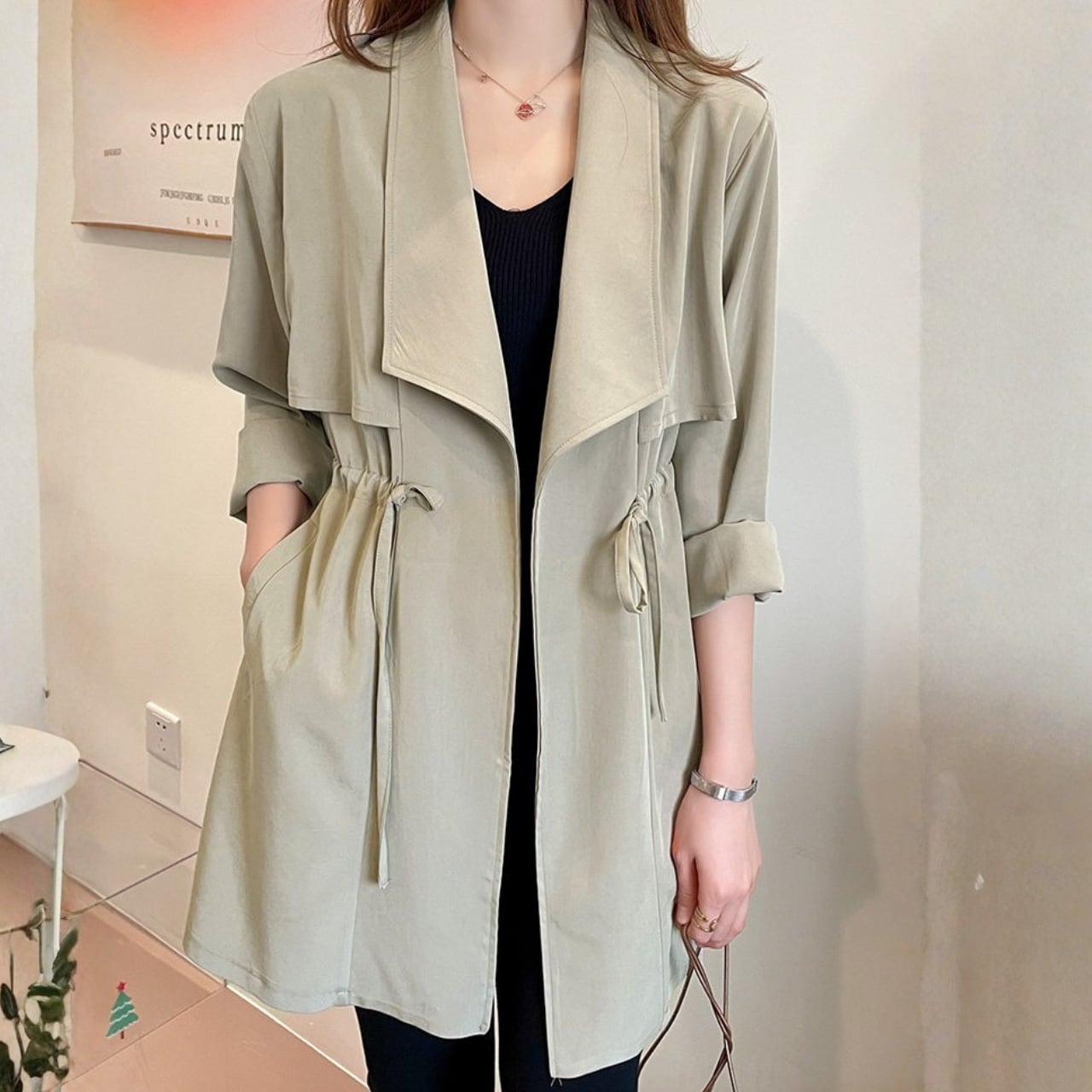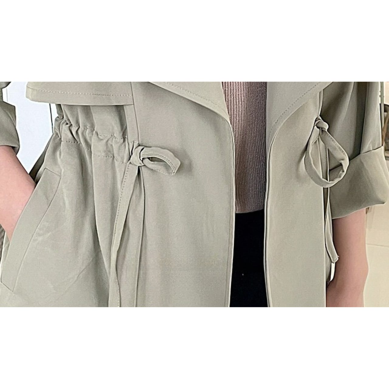 ドローストリング ミディ丈 長袖 ライトアウター ジャケット f0050