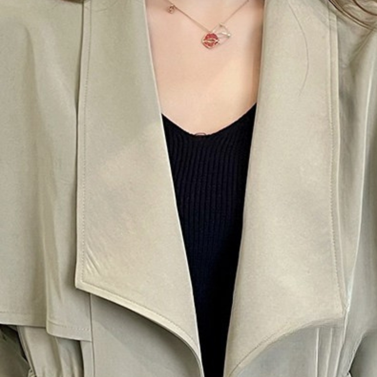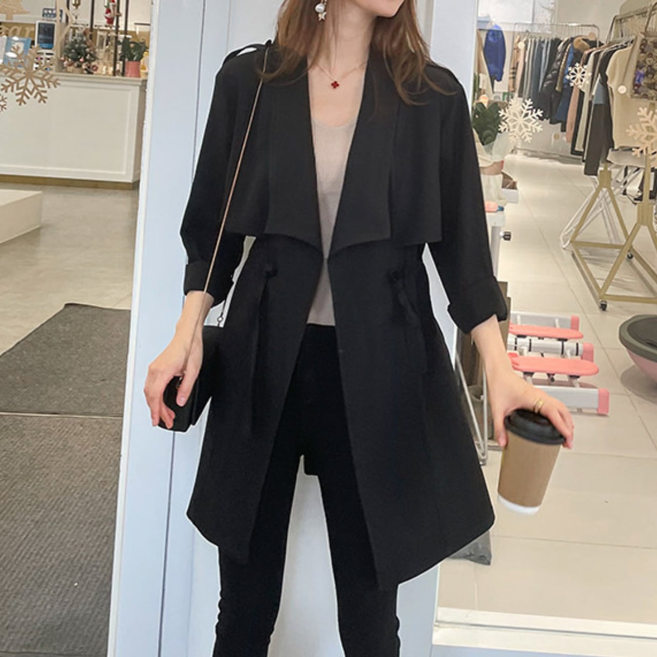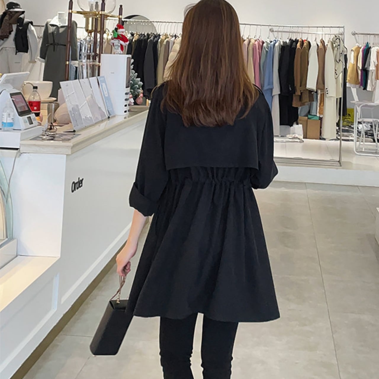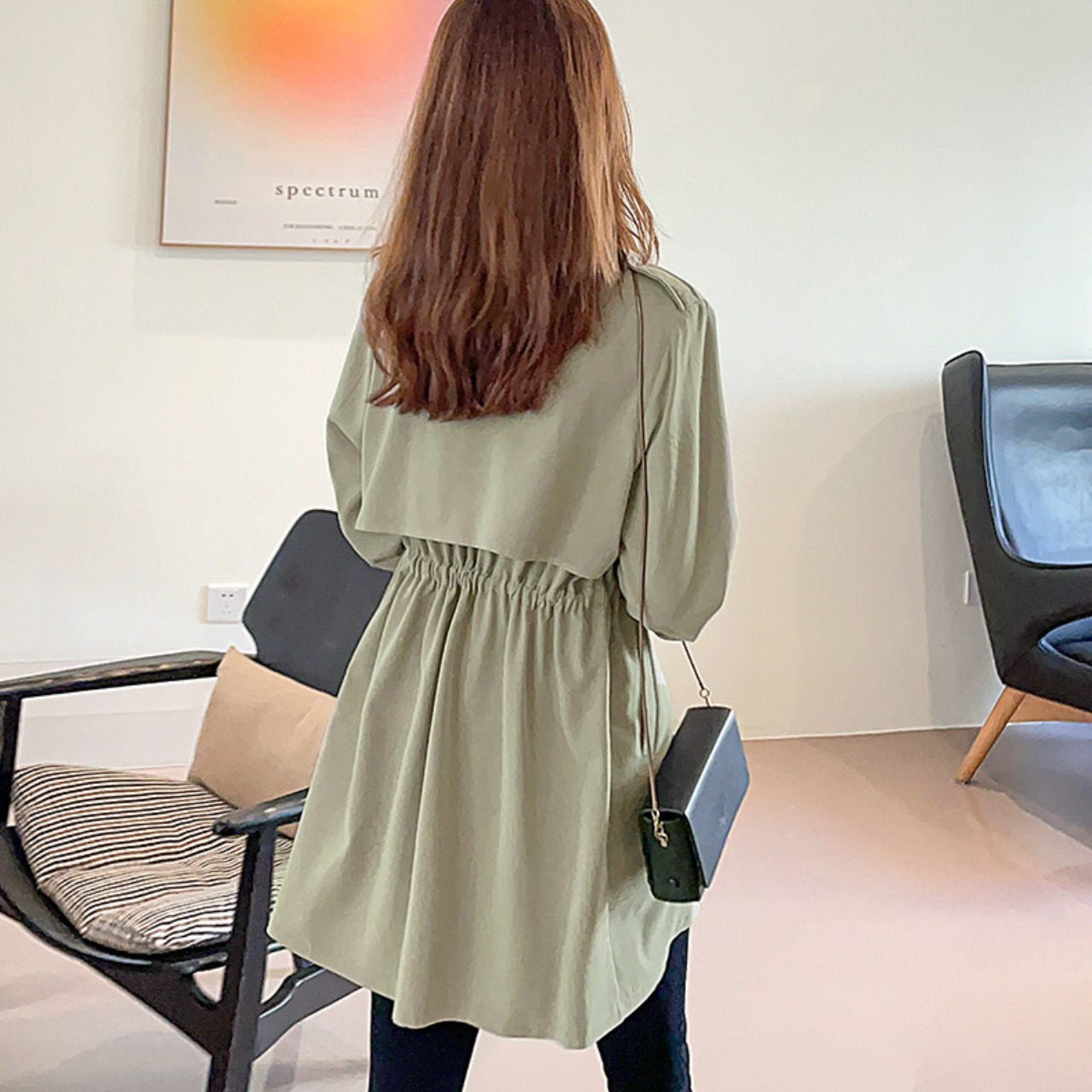 ドローストリング ミディ丈 長袖 ライトアウター ジャケット f0050