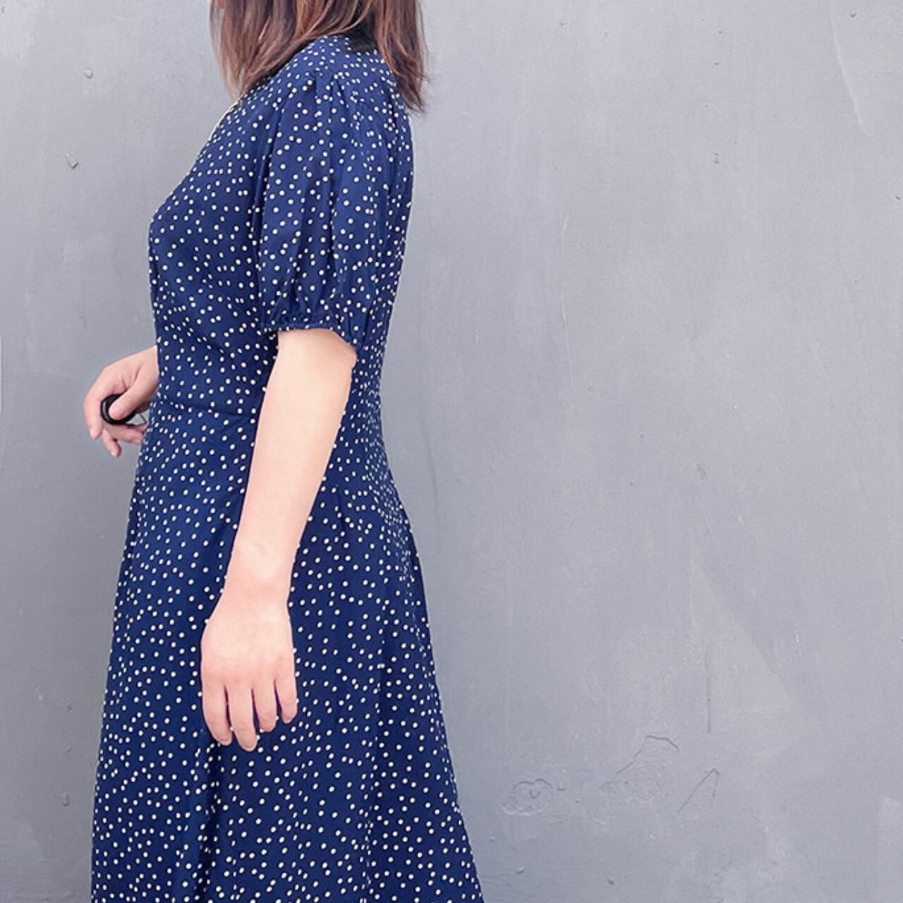 清楚でレトロな雰囲気を演出するドット柄ワンピースです。