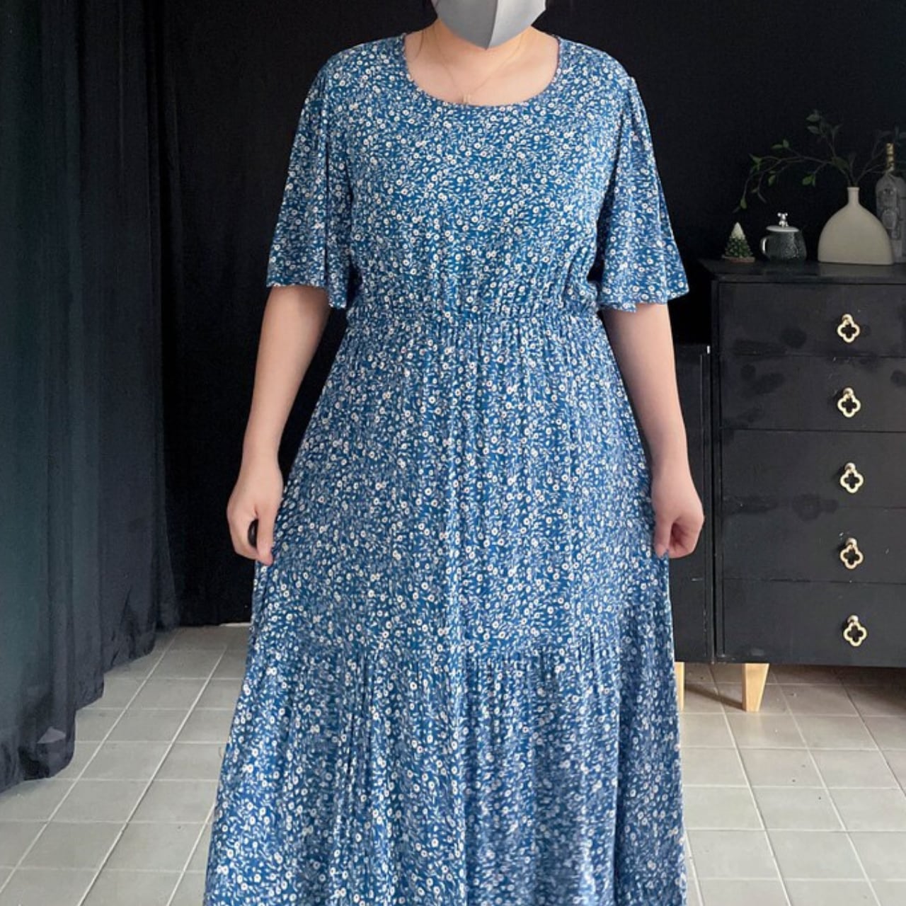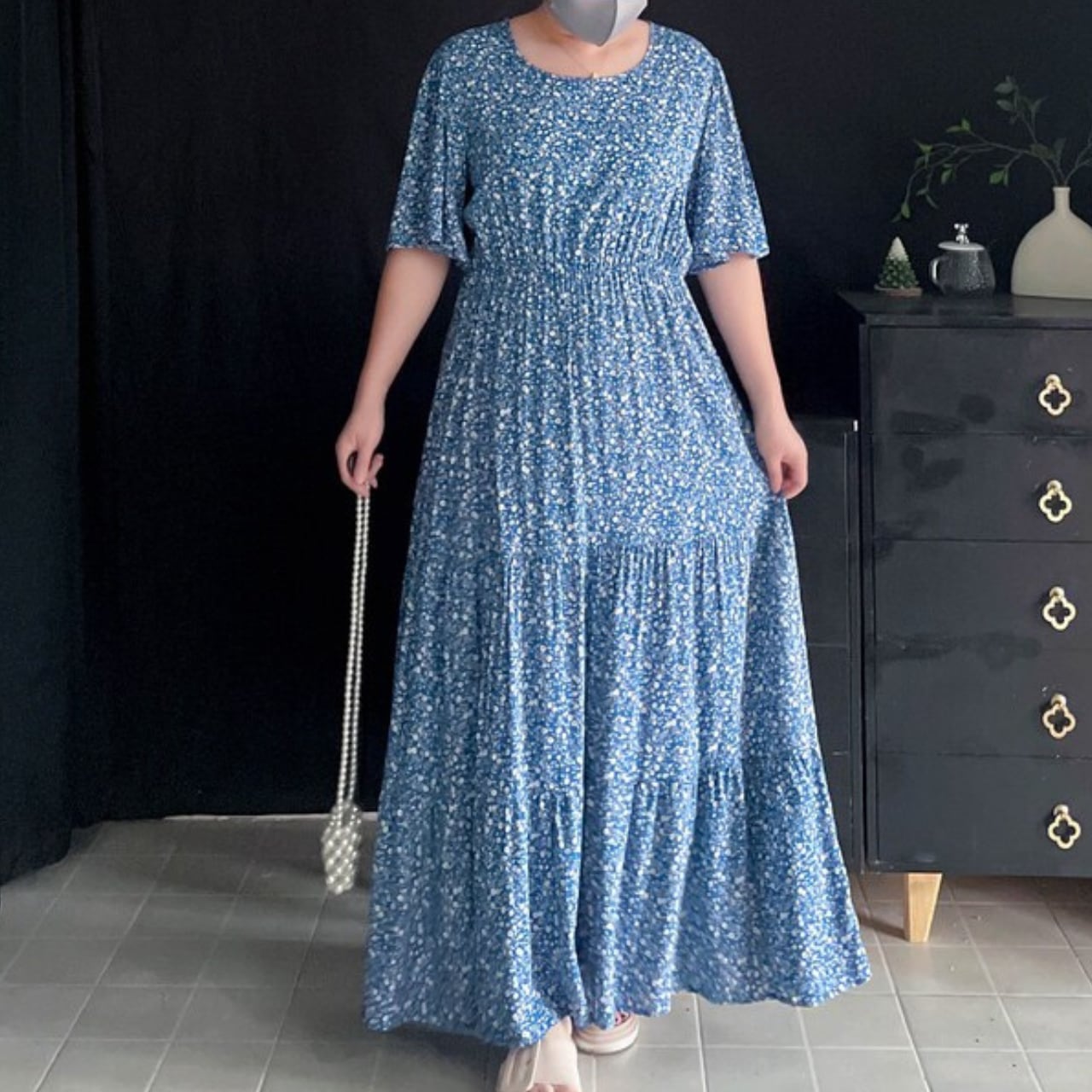 ふんわりシルエットが可愛いマキシ丈ワンピース。