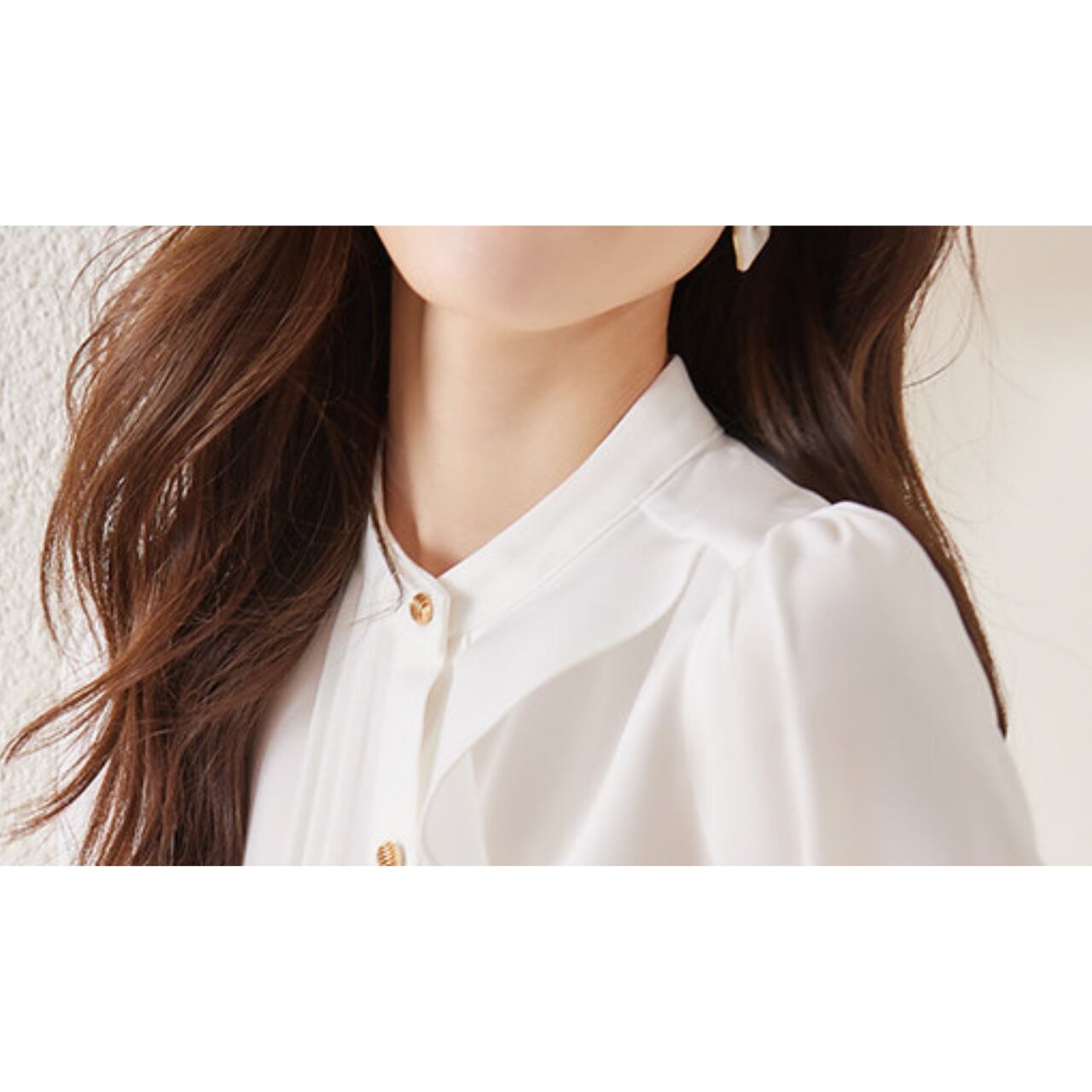 長袖 フリルディテール シャツカラー ブラウス f0051