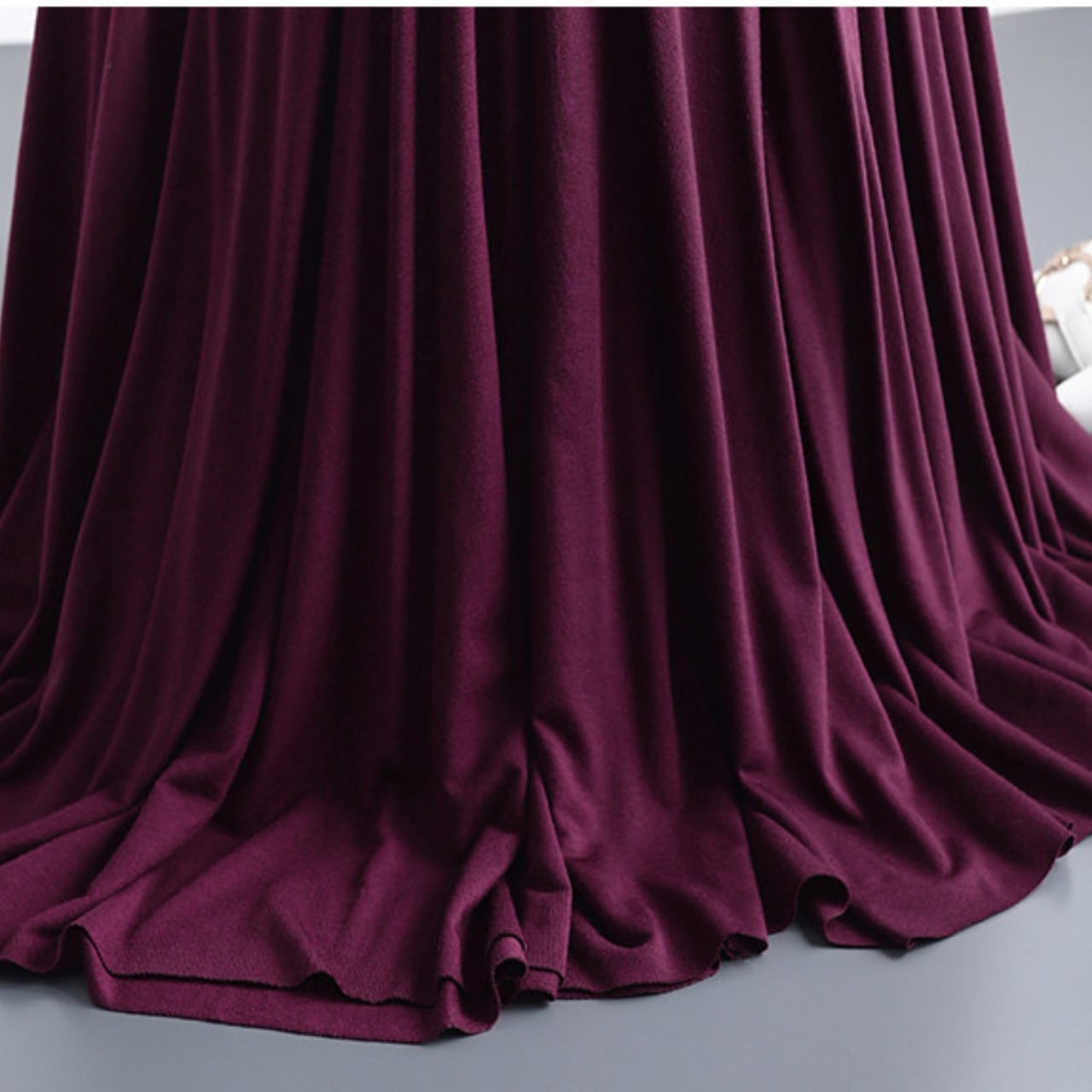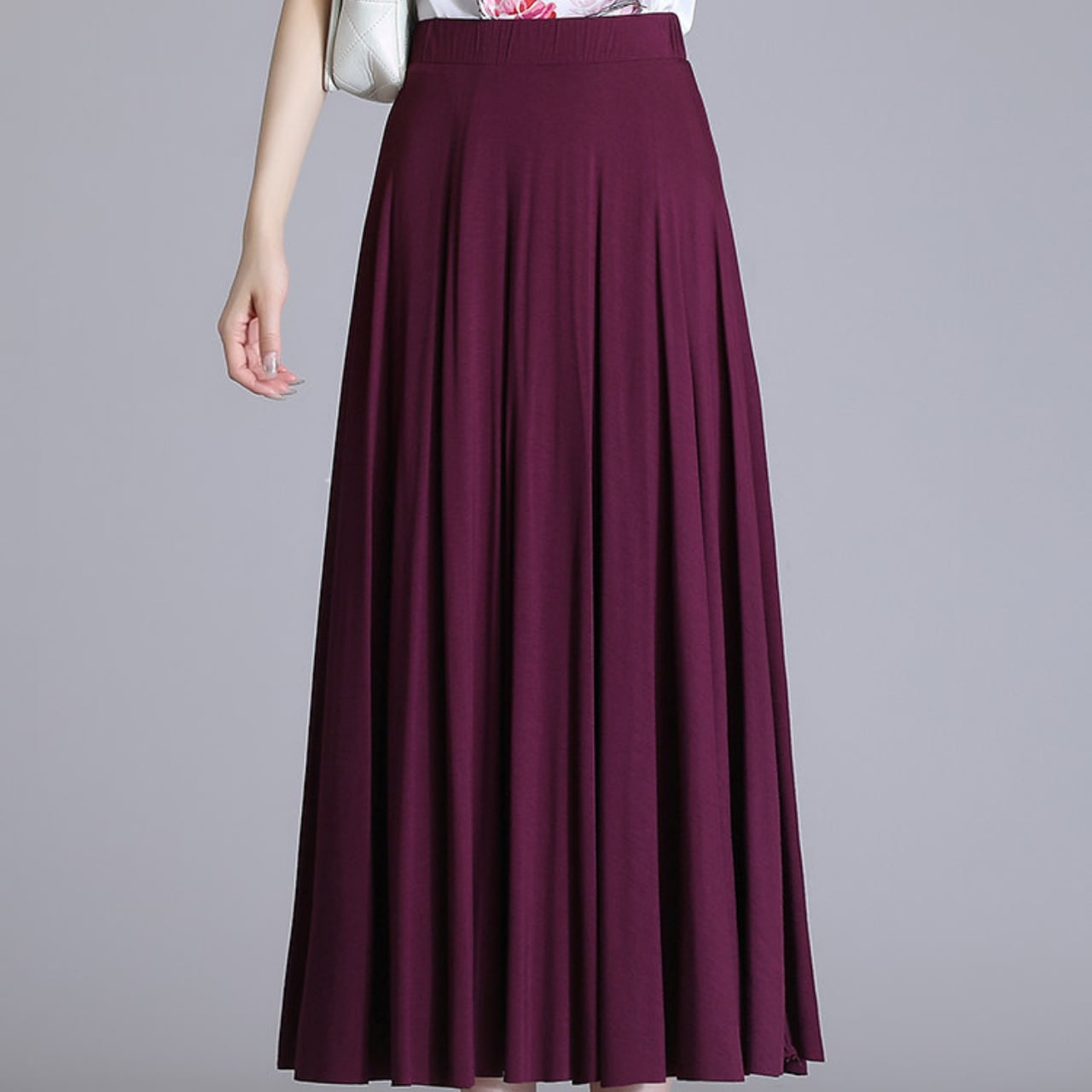 広がりすぎないフレアシルエットで、大人っぽく上品な印象を演出します。