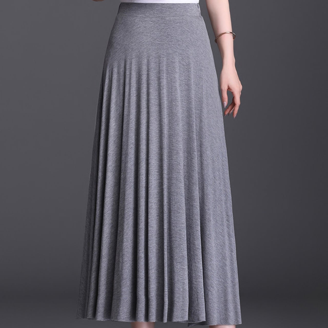 歩くたびに優雅に揺れる、ミモレ丈フレアスカート。