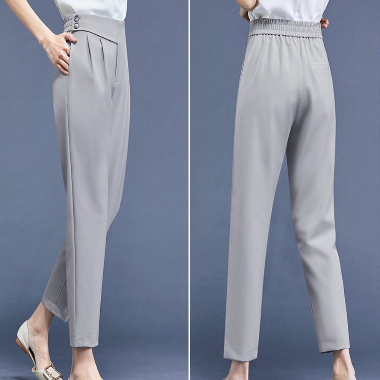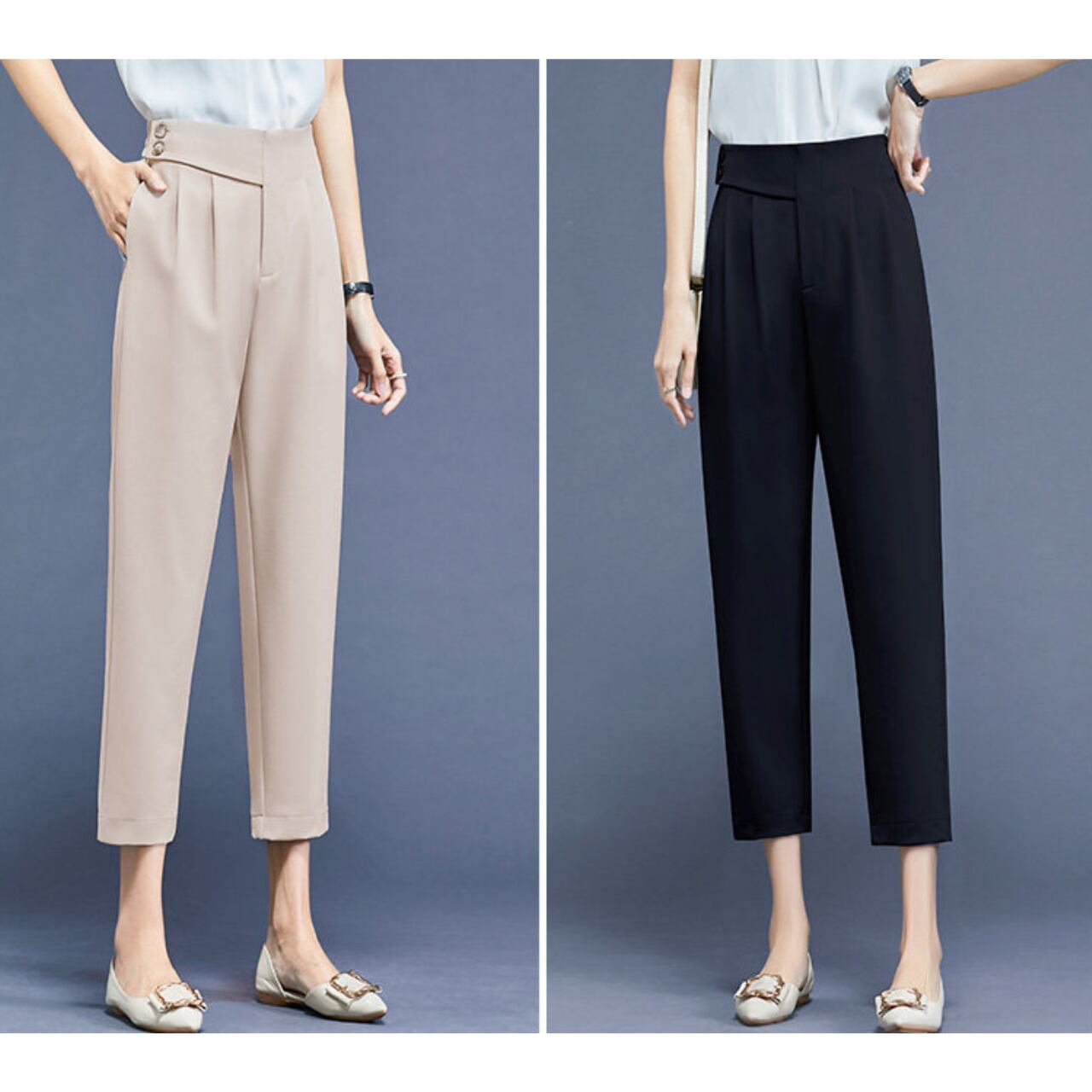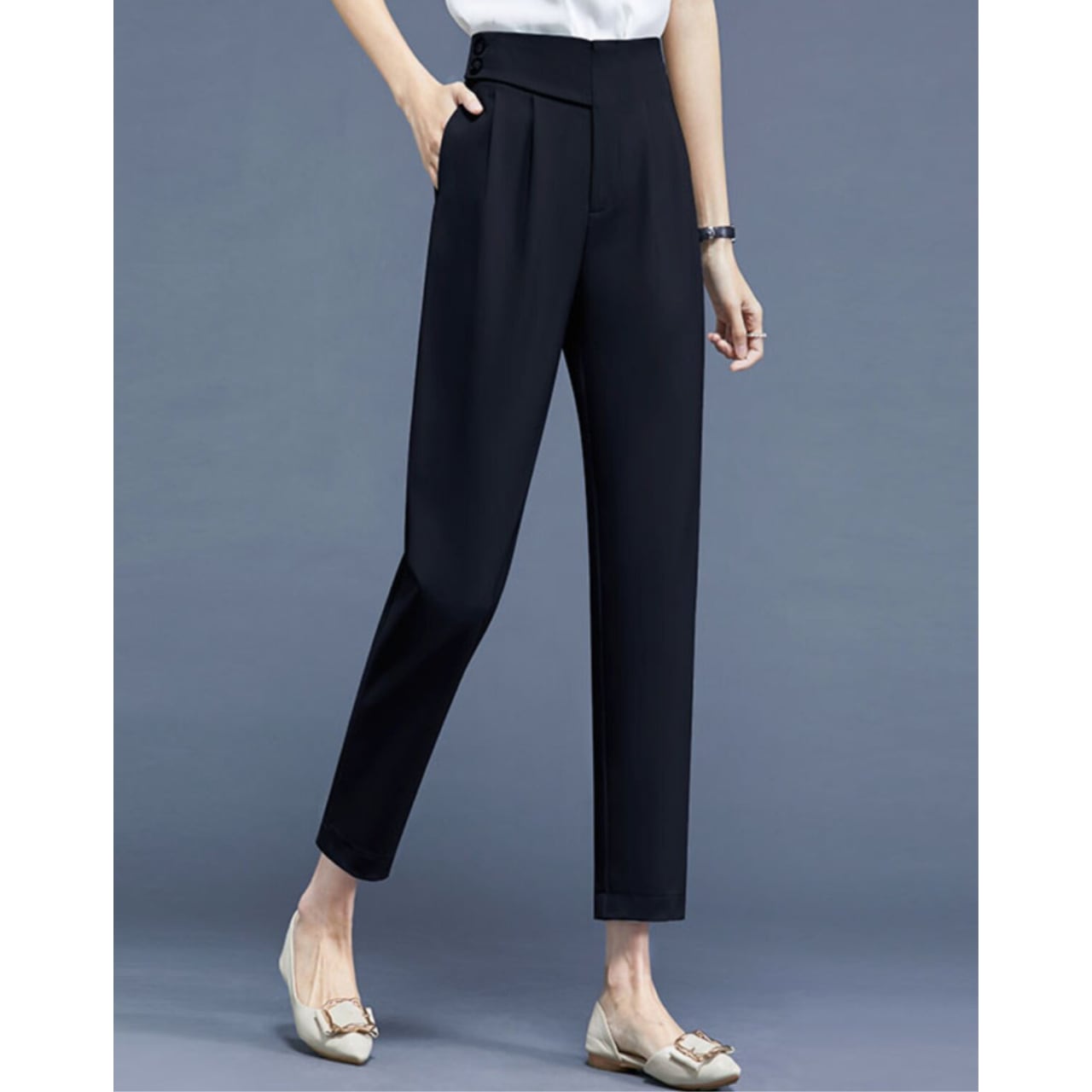 ウエスト:70cm ヒップ:99cm 股上(前):29cm 股上(後):38.5cm わたり幅:30.0cm 裾幅:33cm(八分丈)、29cm(九分丈) 総丈:81cm(八分丈)、91cm(九分丈)