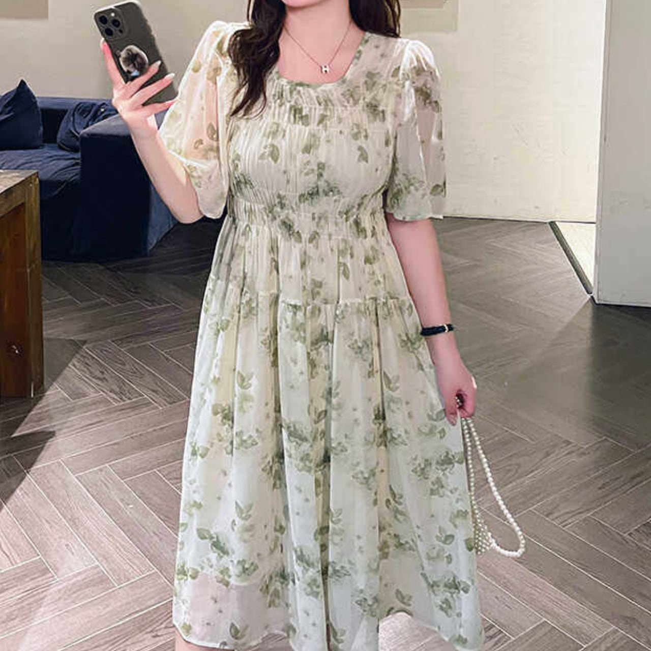 同時にウエストのギャザーがふんわりとしたシルエットを引き締め、女性らしさを引き立てます。お出かけやデートなど、様々なシーンで活躍する1枚です。
