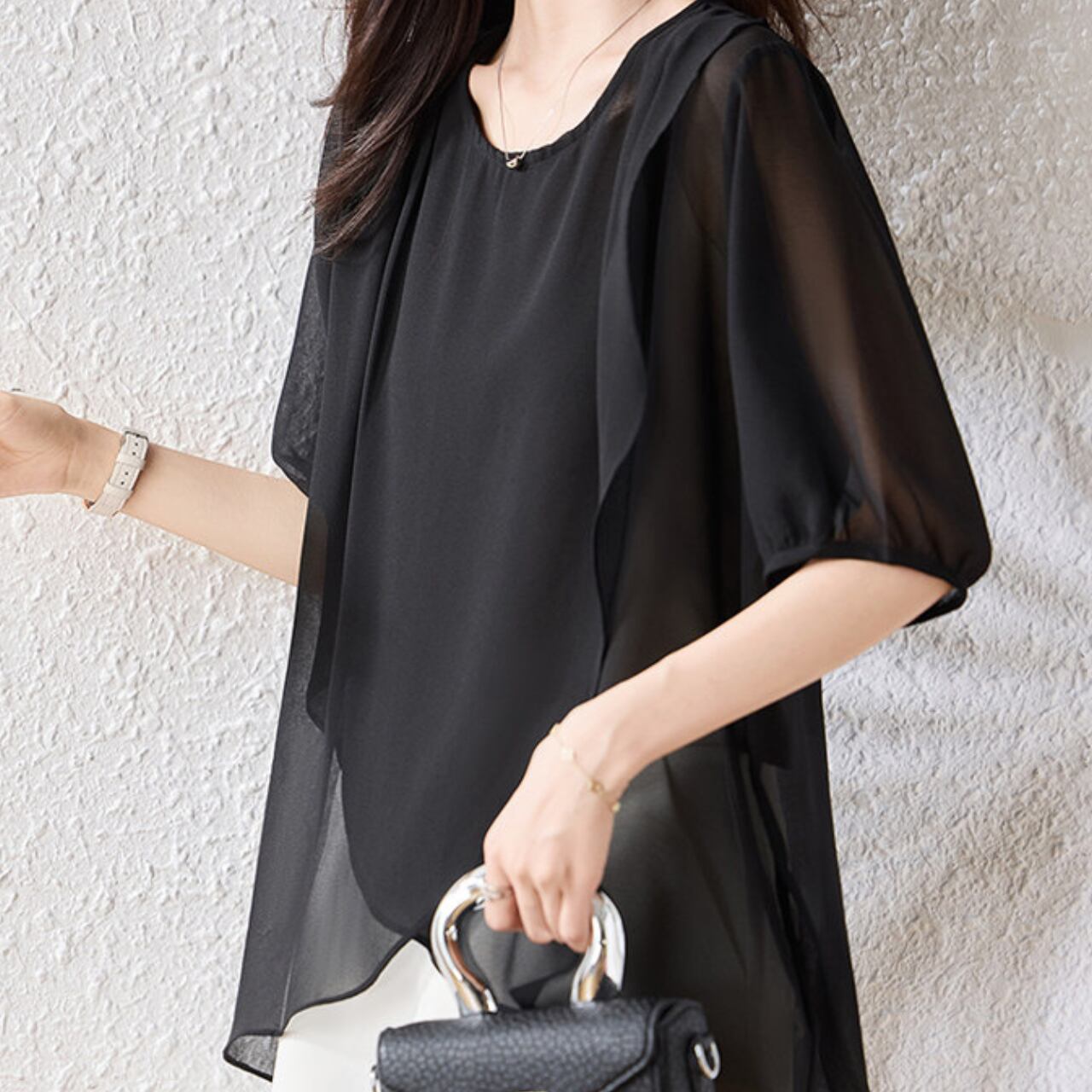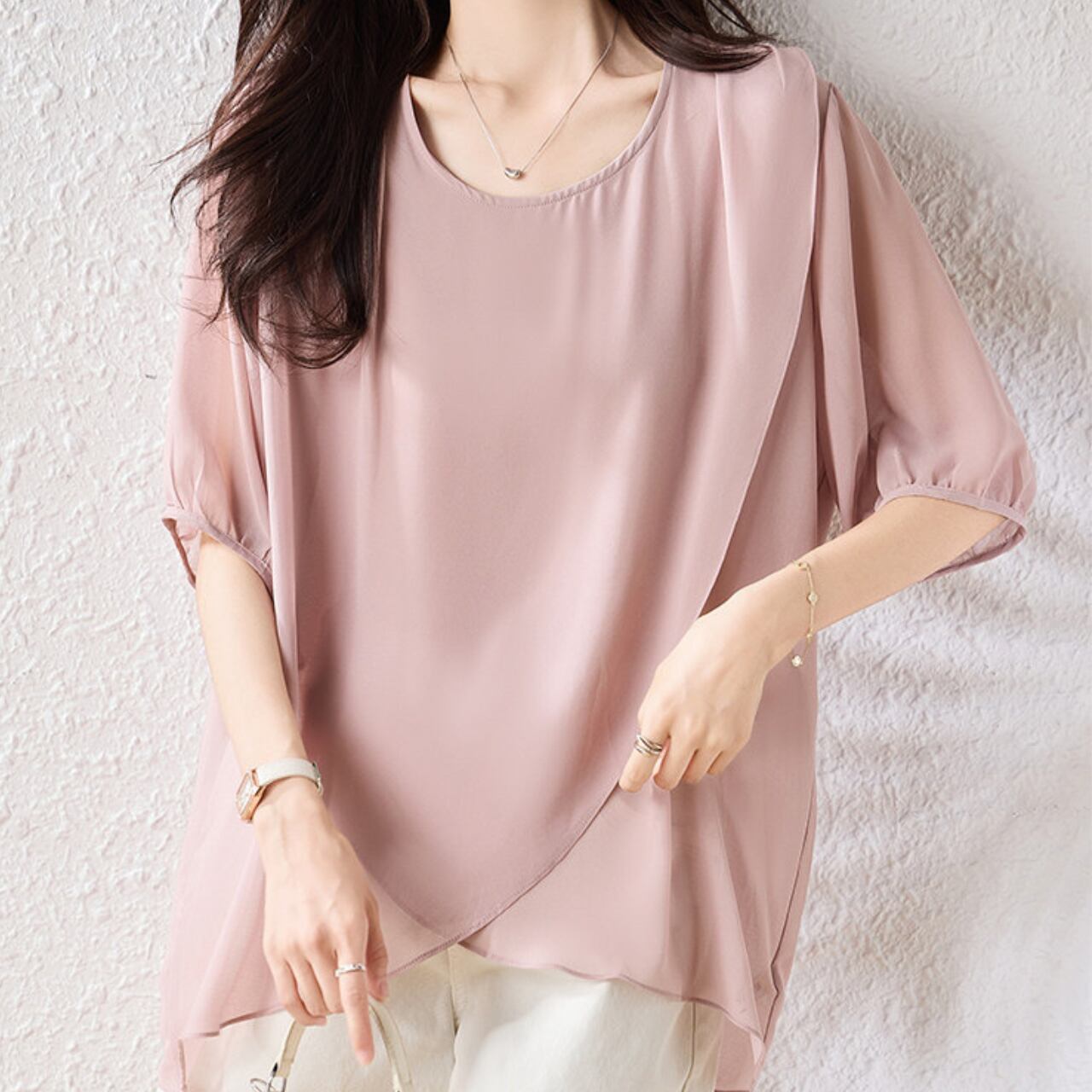 アシンメトリー 半袖 ヒップ丈 ブラウス f0108