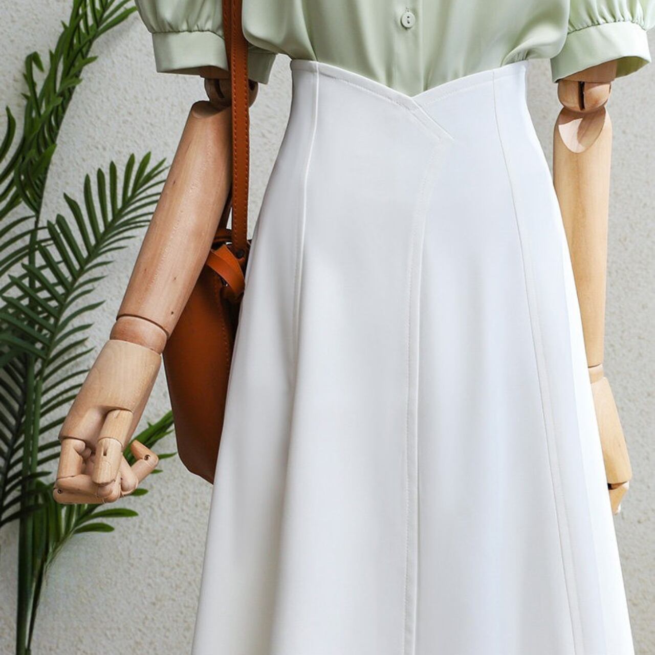 V字 ハイウエスト ミモレ丈 スカート f0110
